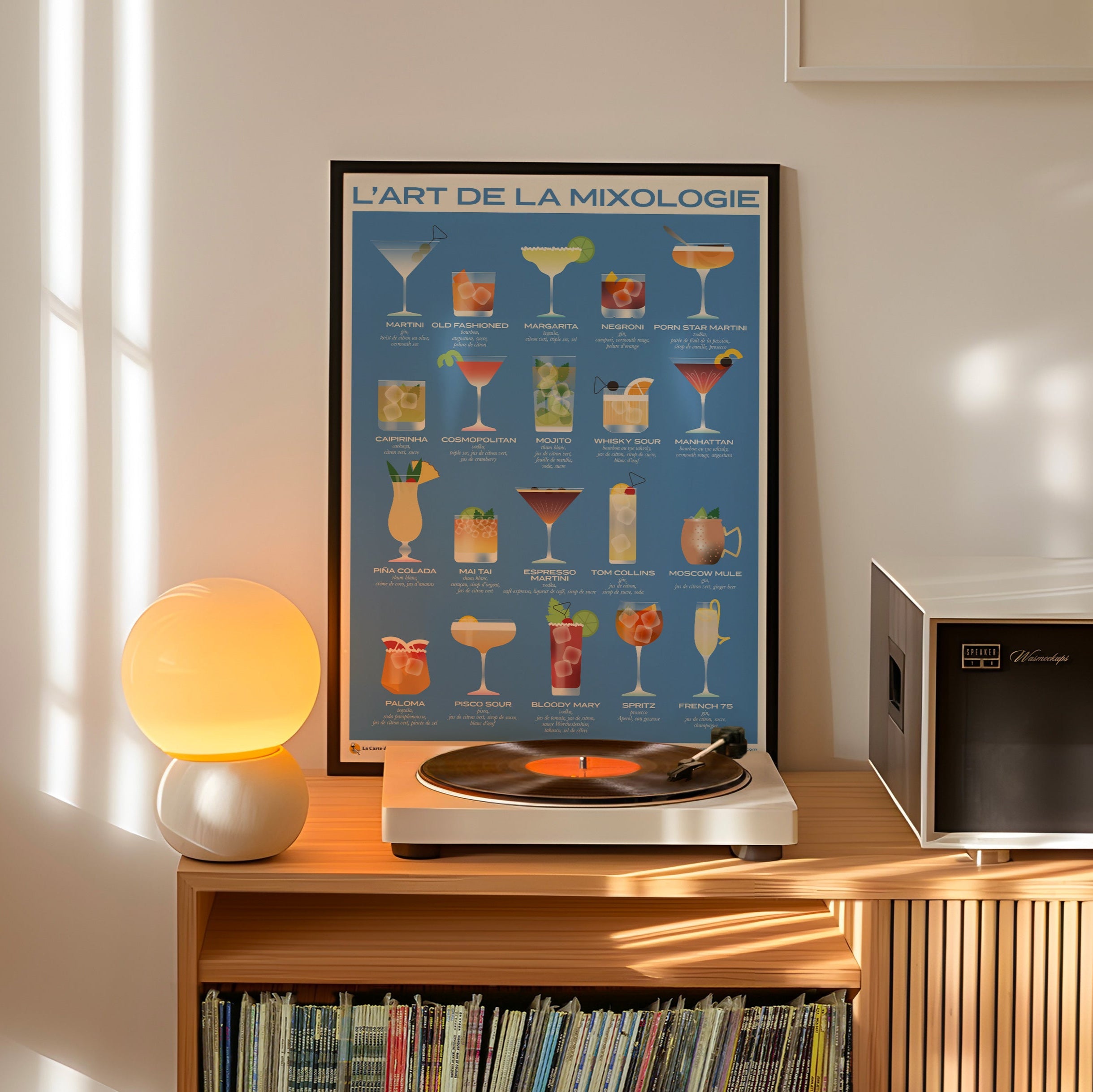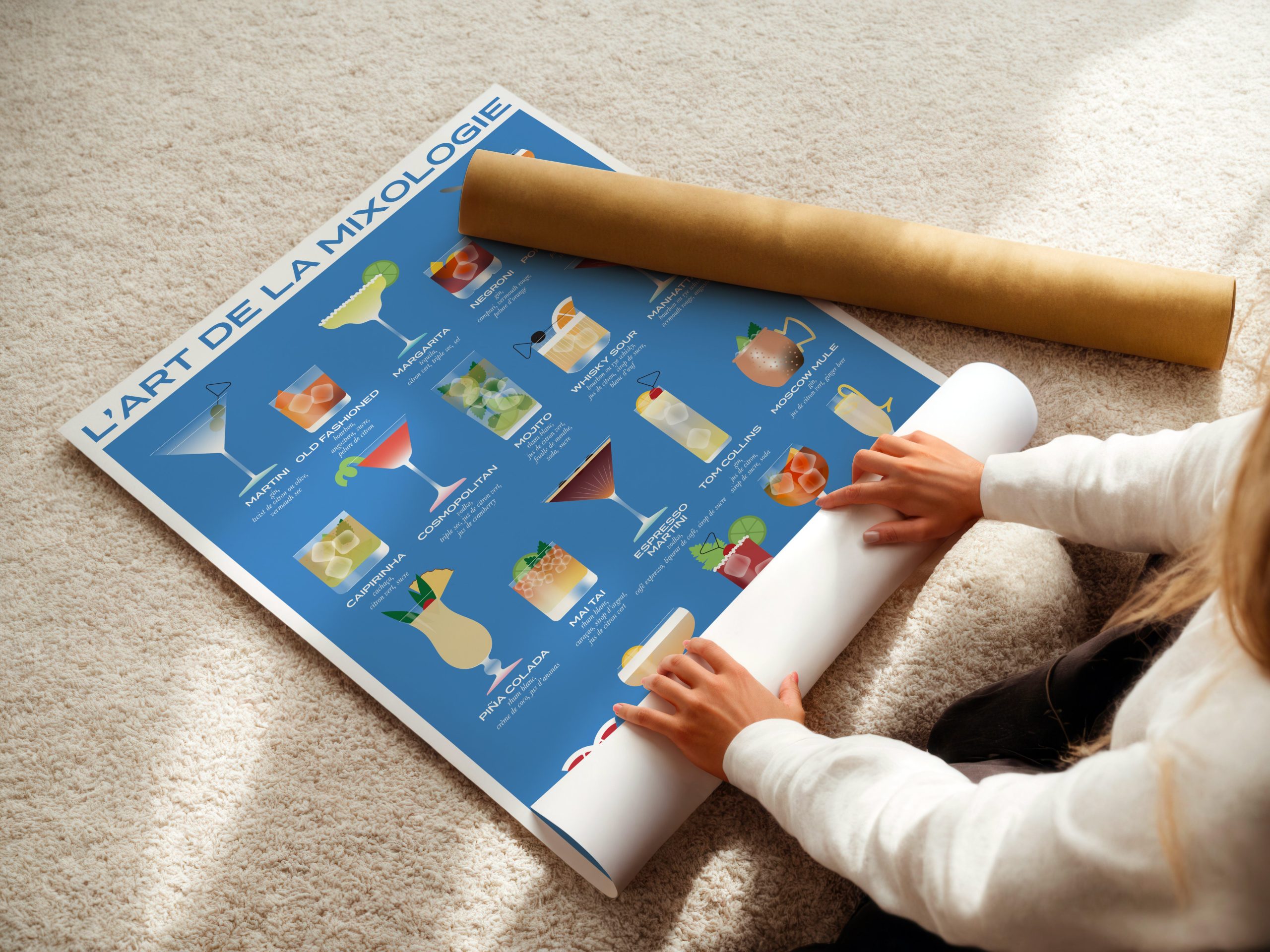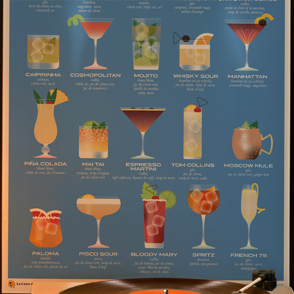 Une affiche élégante et design qui met en lumière les 20 cocktails les plus emblématiques avec leurs ingrédients.