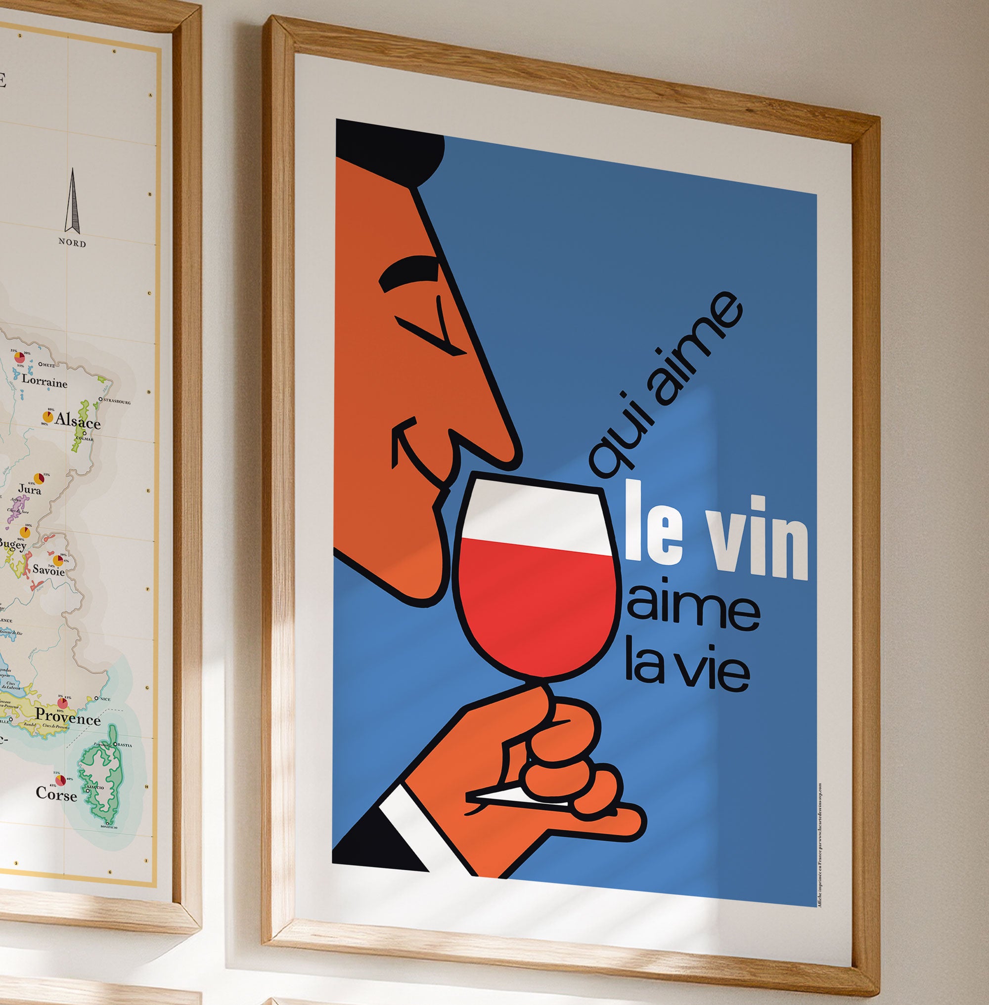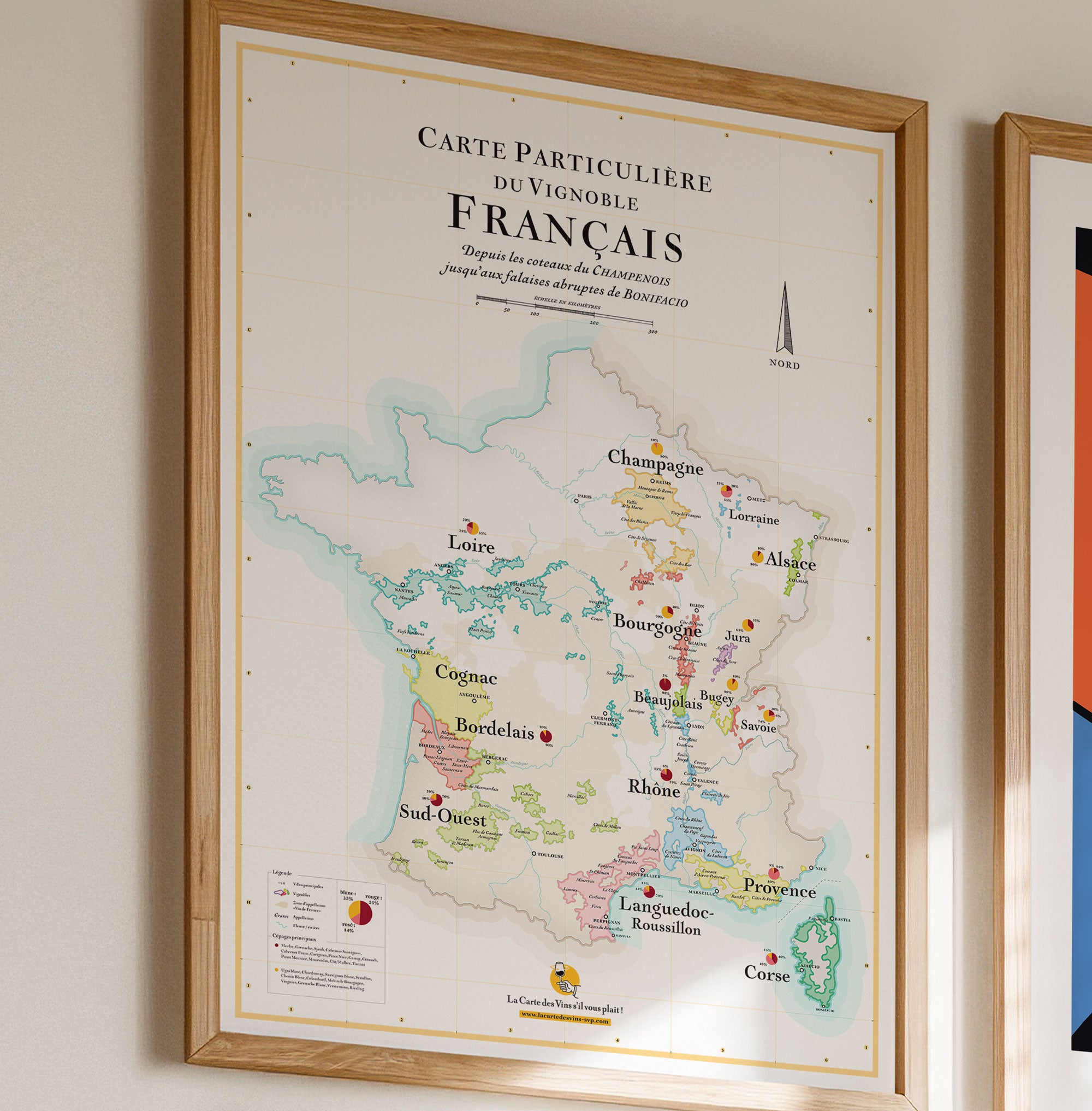 Une idée cadeau originale et déco pour les amateurs de vin. Taille standard 50 x 70cm, facile à encadrer.