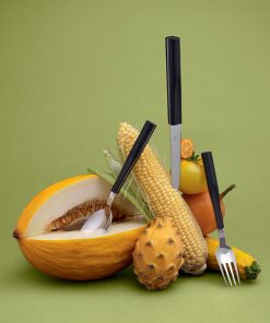 La collection de couvert L’E signe la collaboration entre la maison DEGRENNE et le créateur PHILIPPE STARCK. Adaptées aux nouvelles tendances de consommation, les fourchettes sont dessinées dans une forme creusée pour savourer sauces, quinoa et autres céréales. Les couverts L’E TRUFFE NOIR sont réalisés dans un acier inoxydable 18-10 et le manche est fabriqué dans un matériau composite chargé de fibres naturelles. Ils apporteront une véritable touche Design et Ecologique à vos tables. Le coffret 24 pièces L’E TRUFFE NOIRE contient 6 fourchettes de table, 6 couteaux de table, 6 cuillère de table et 6 cuillères à café.