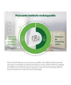 – Autonomie caméra 22h en mode éco – 12h en vidéo continu