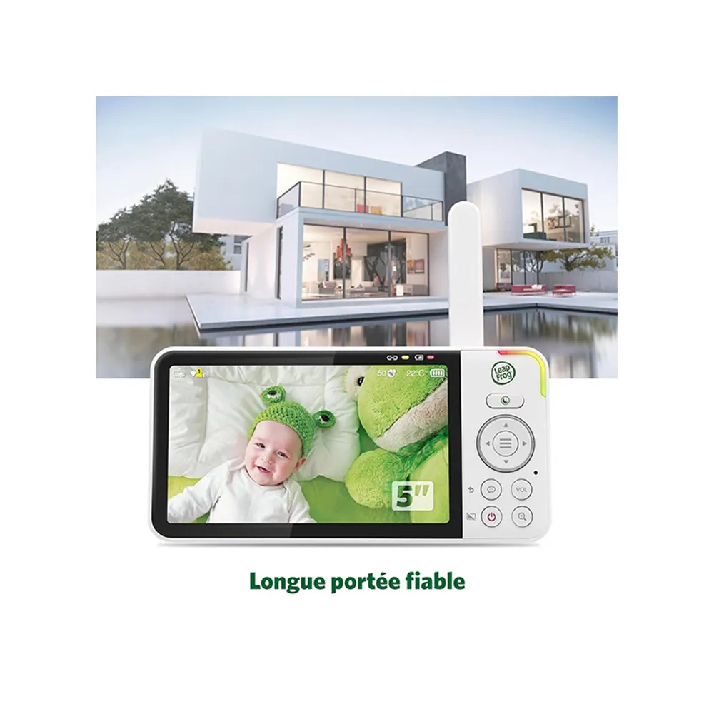 Le moniteur vidéo panoramique et inclinable pour bébé Leapfrog 1080p WiFi Remote Access dispose d’un écran HD 720p de 5 pouces, d’une veilleuse et d’une vision nocturne en couleur. Visualisez les pièces de haut en bas avec une inclinaison verticale à 152 degrés et d’un côté à l’autre avec une inclinaison horizontale à 360 degrés.il est fabriqué en acier inoxydable qui le protégera de toutes les conditionsAffichage HD 1080p à distance et 720p local