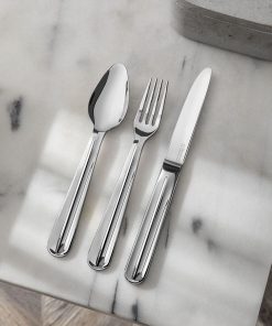 Réalisée dans notre manufacture de Vire (Normandie, France), la Collection L’EMPREINTE incarne le savoir-faire de la Maison DEGRENNE : la transformation de l’acier inoxydable en couverts alliant élégance et générosité. La forme sculpturale est travaillée avec maîtrise par nos artisans. L’EMPREINTE N°1 met en scène une finition miroir, éclatante de mille feux. Réalisés en acier inoxydable 18-10, de haute qualité et résistance, les couverts L’EMPREINTE N°1 sont faciles d’entretien. Générosité dans les formes et dans les courbes. L’EMPREINTE invite à la dégustation et à des moments de partage pour des tables raffinées.