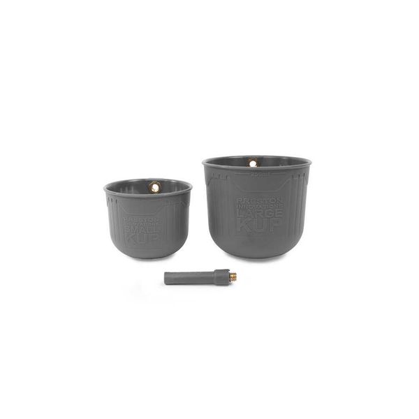 Fourni avec deux coupelles KUP et deux tailles différentes, toutes deux dotées de trous perforés à la base pour assurer une libération optimale des appâts.