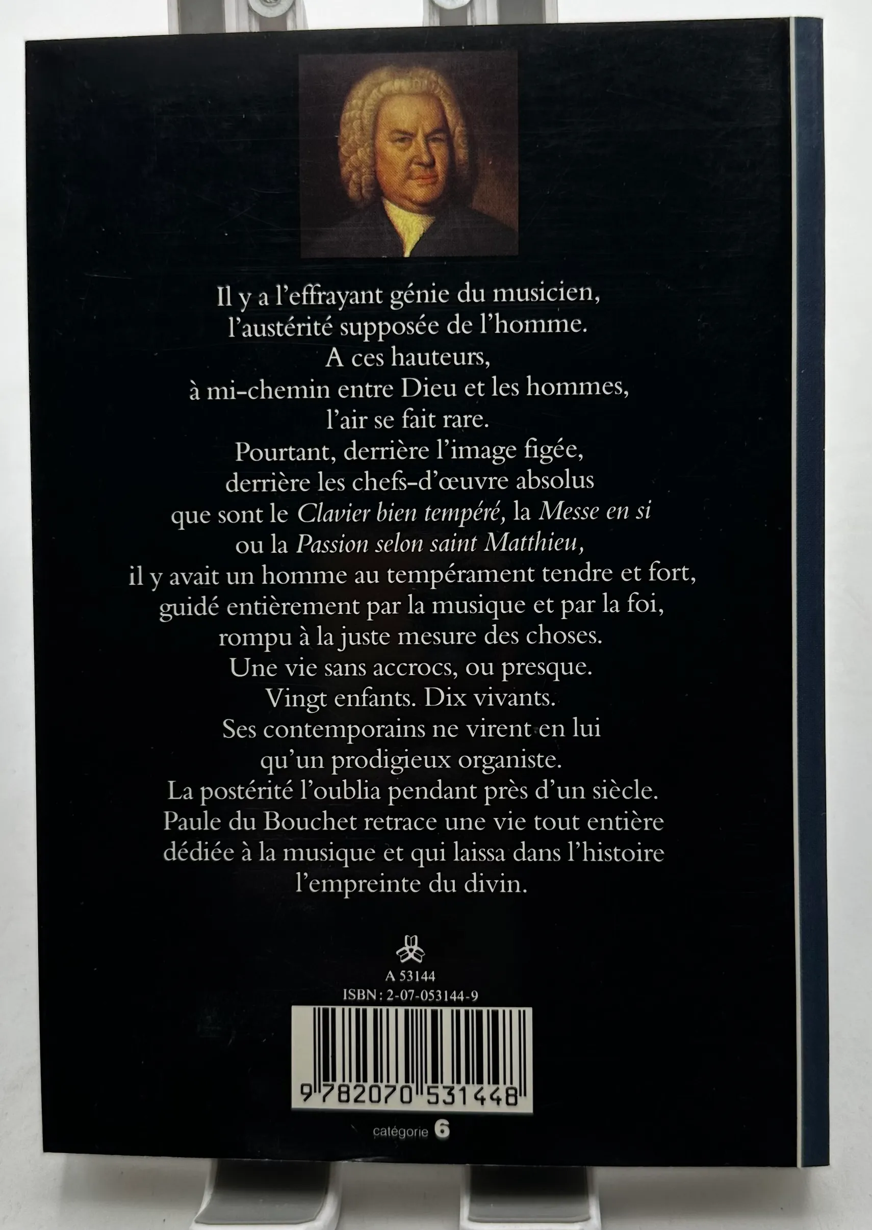 Il y a l’effrayant génie du musicien, l’austérité supposée de l’homme. À ces hauteurs, à mi-chemin entre Dieu et les hommes, l’air se fait rare. Pourtant, derrière l’image figée, derrière les chefs-d’oeuvre absolus que sont le Clavier bien tempéré, la Messe en si ou la Passion selon saint Matthieu, il y avait un homme au tempérament tendre et fort, guidé entièrement par la musique et par la foi, rompu à la juste mesure des choses. Une vie sans accrocs, ou presque. Vingt enfants. Dix vivants. Ses contemporains ne virent en lui qu’un prodigieux organiste. La postérité l’oublia pendant près d’un siècle.Paule du Bouchet retrace une vie tout entière dédiée à la musique et qui laissa dans l’histoire l’empreinte du divin.