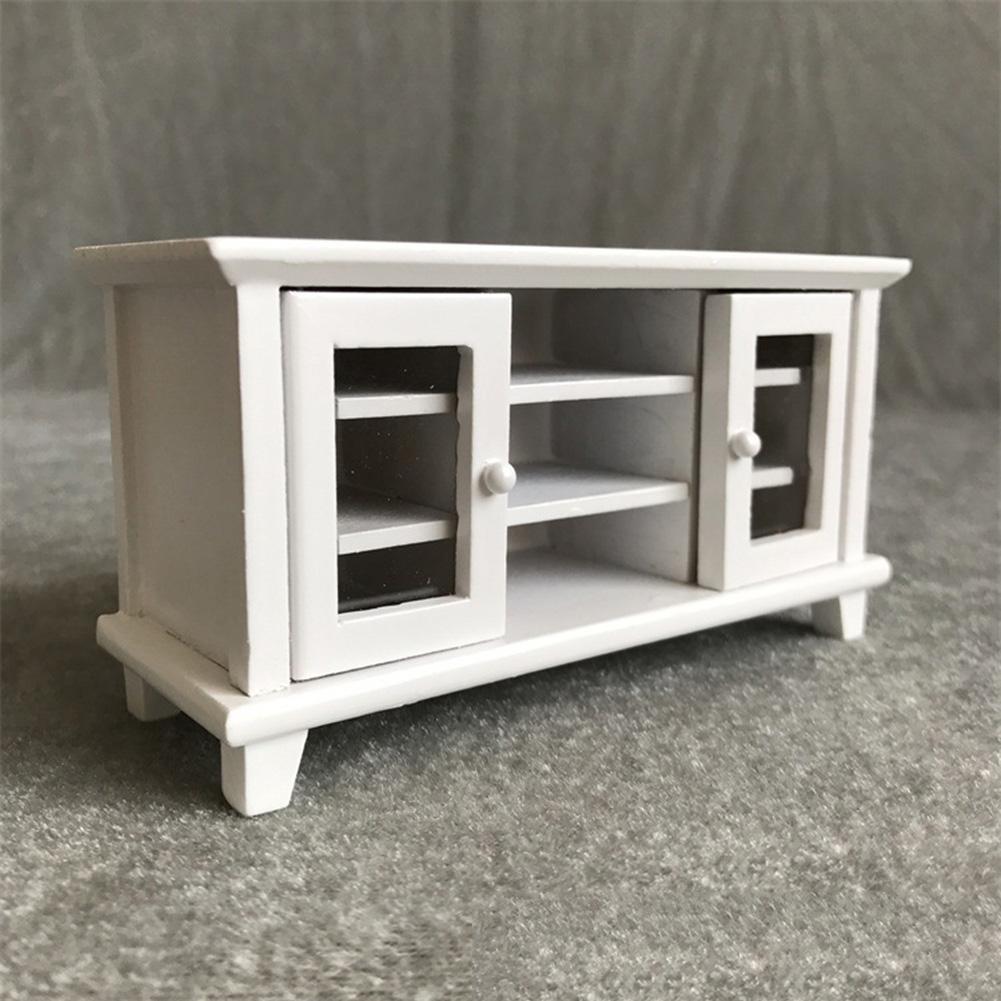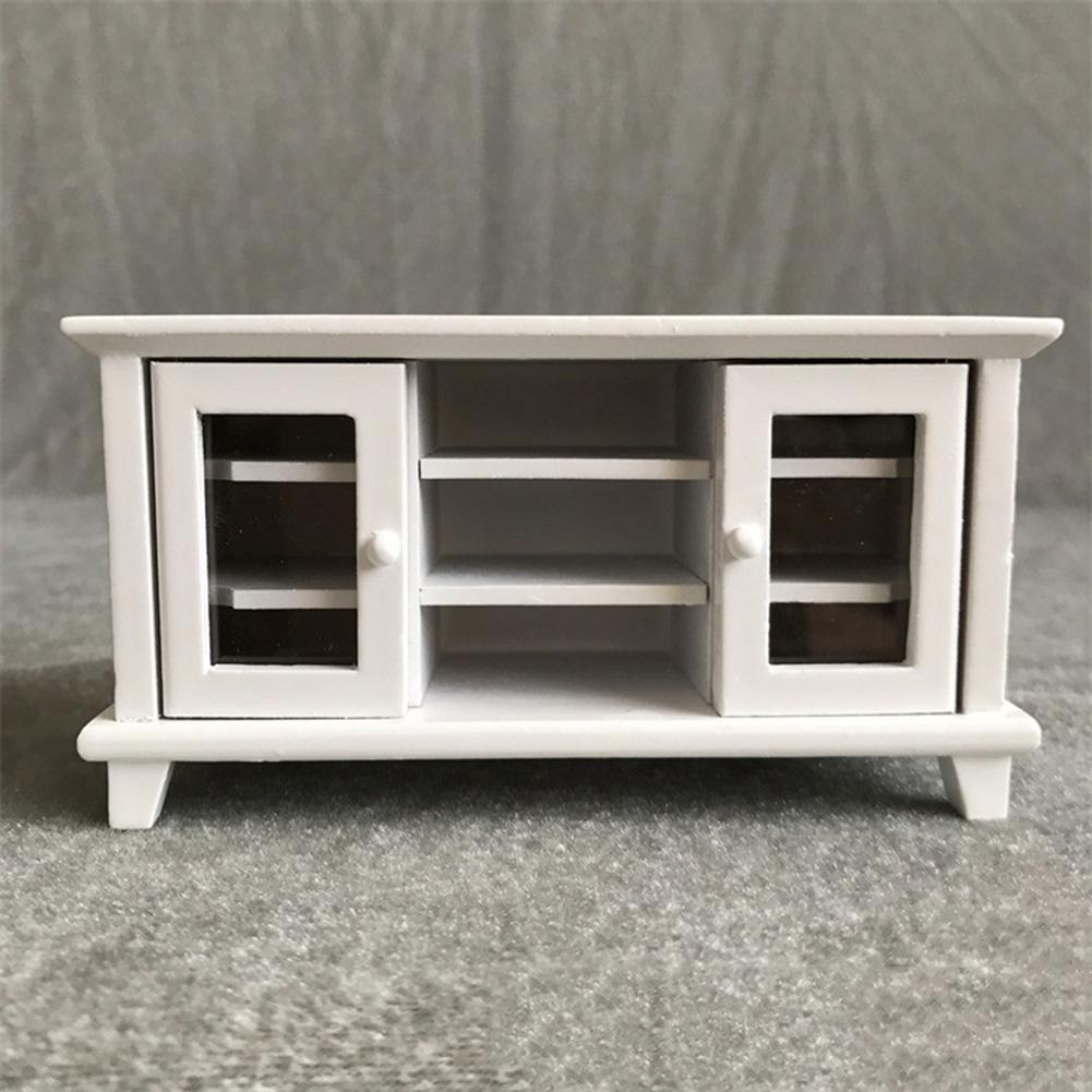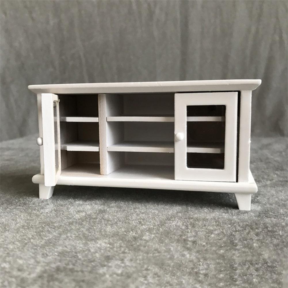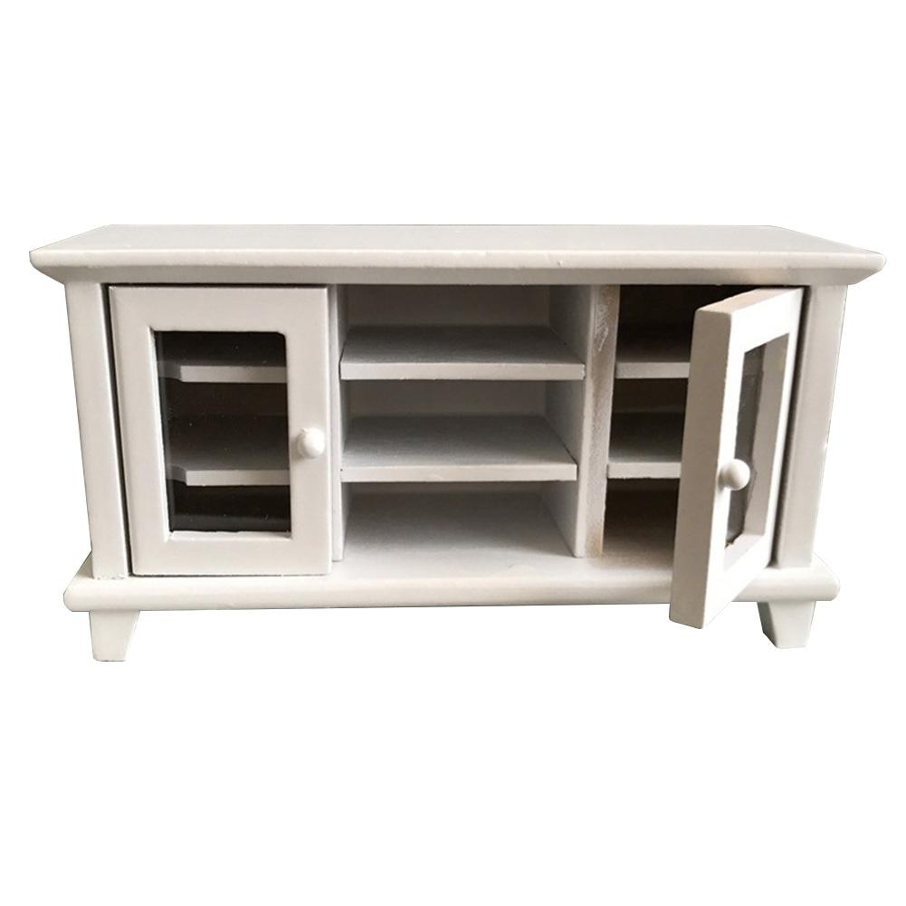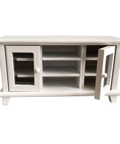Meuble télévision en bois blanc, 2 portes ouvrantes, étagères