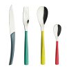 La collection de couverts MIRAGE de DEGRENNE offre un registre de forme moderne et épuré. Le design rectiligne et minimaliste met l’accent sur l’originalité des couteaux, disponibles en deux versions. La forme innovante des couteaux n°1 permet de garder une face totalement lisse, sans aucune aspérité visuelle, pour des tables originales au caractère unique. Les proportions modernes des couteaux n°2 sont plus consensuelles sans perdre leur design minimaliste particulier. En acier inoxydable 18-10, de haute qualité et résistance, ils sont faciles d’entretien. Le coffret 24 pièces MIRAGE contient 6 fourchettes de table, 6 couteaux de table n°2, 6 cuillère de table et 6 cuillères à café.