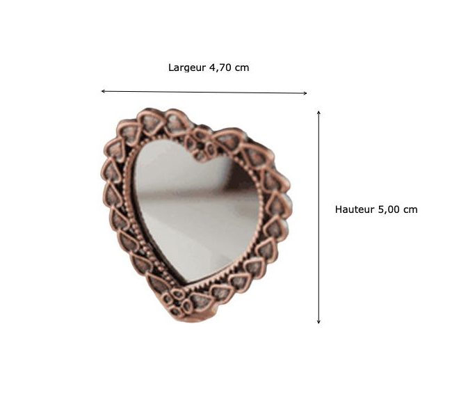 Joli miroir métallique forme  » Coeur  » – Hauteur 5 cm x Largeur 4,7 cm