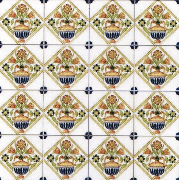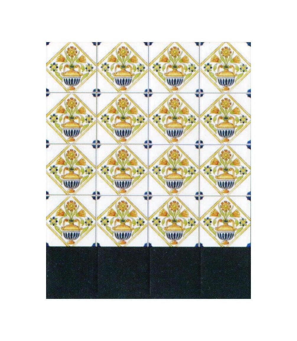 Composé de 16 petits carreaux d’arrangements floraux et de 4 petits carreaux bleu