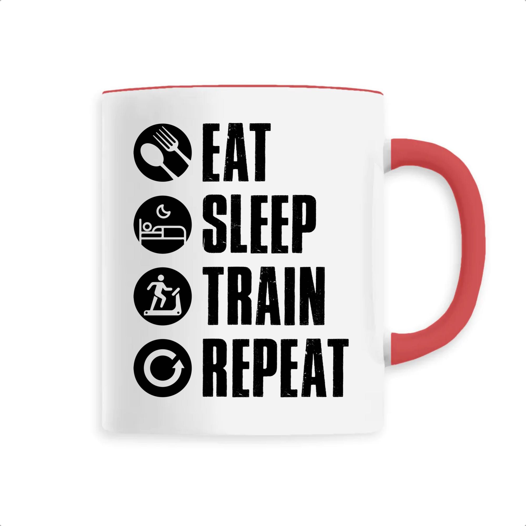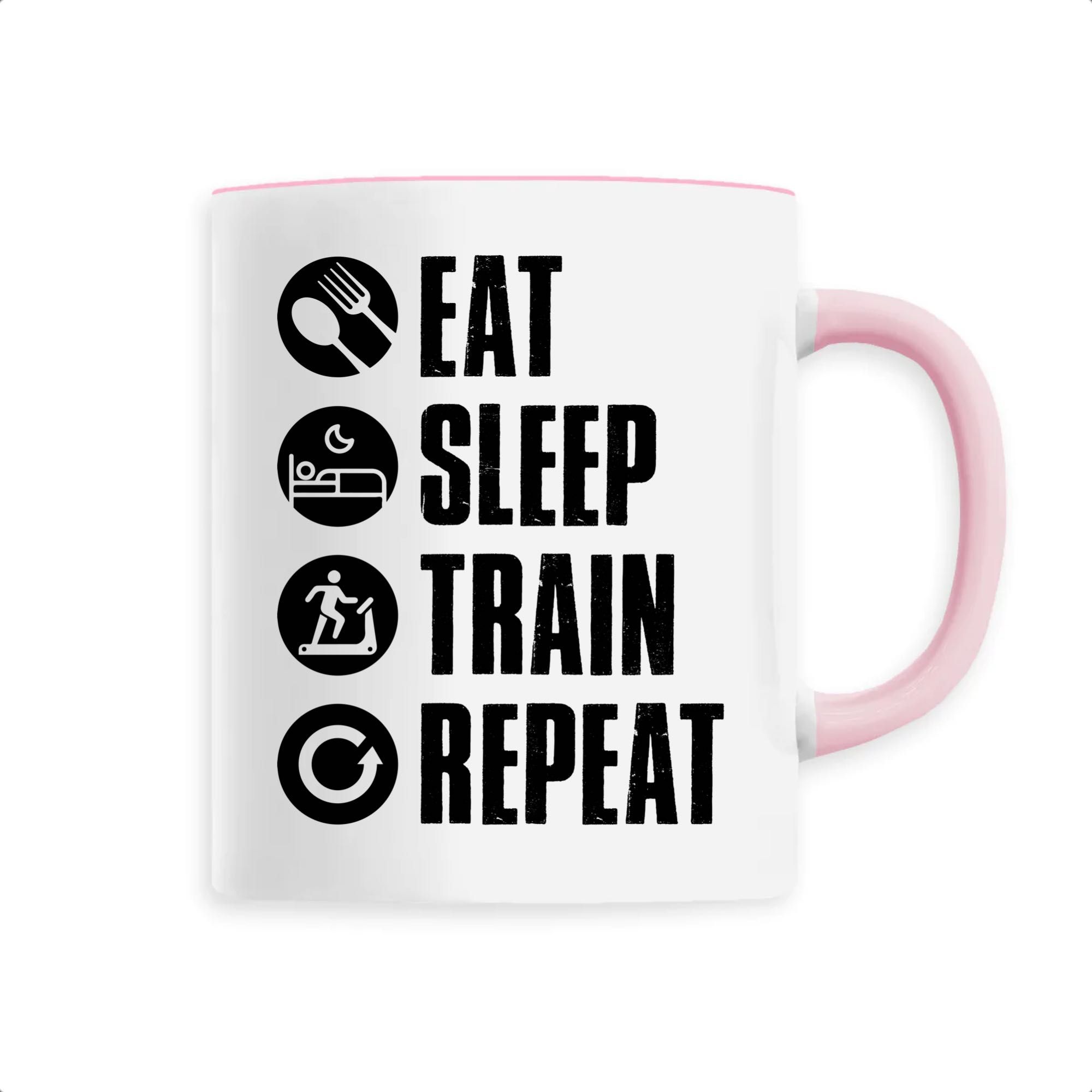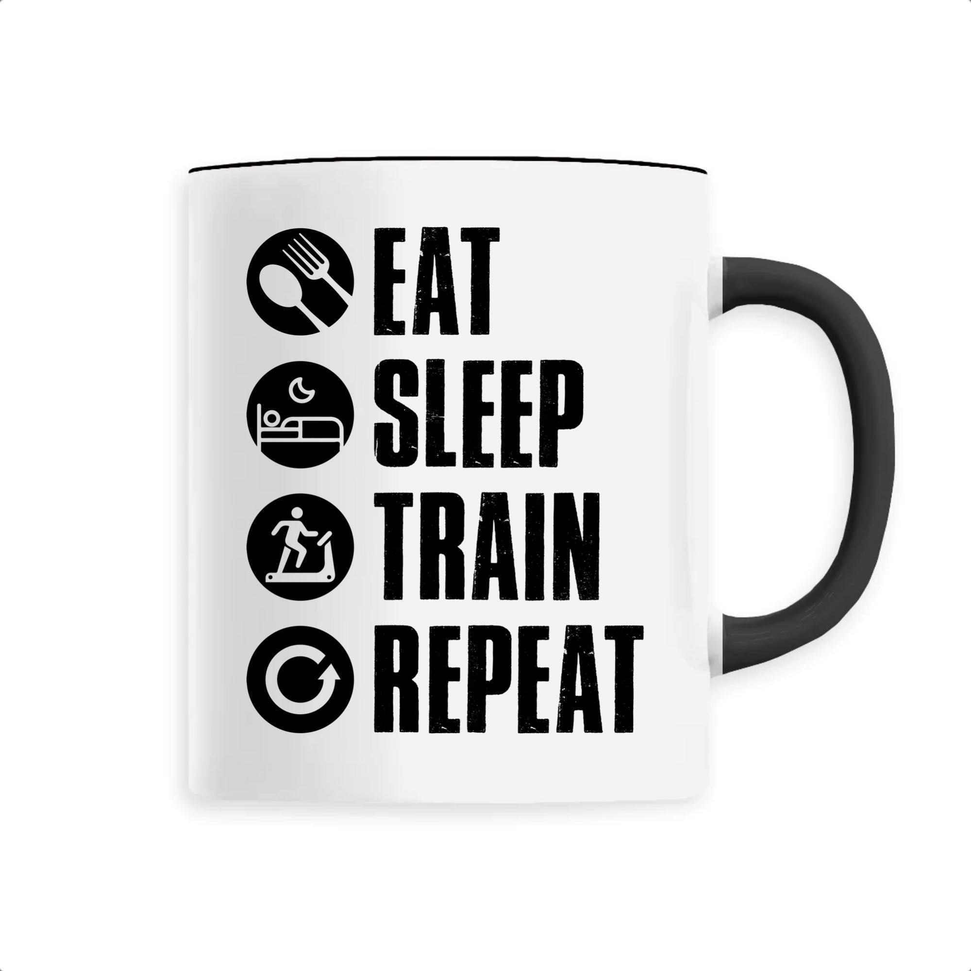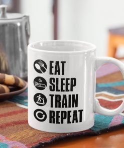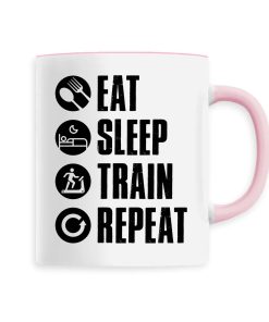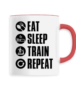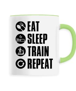 Manger, dormir, s’entraîner et recommencer: voilà le vrai sens de la vie pour tous les sportifs dans l’âme ! Si vous faites partie de ces gens là qui vivent pour la passion du sport, alors ce mug original vous conviendra parfaitement ! Pour offrir ou se faire plaisir, ce mug sera un très bon choix. Bonne humeur garantie 🙂