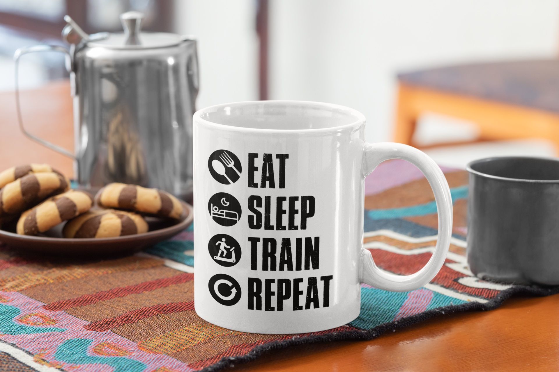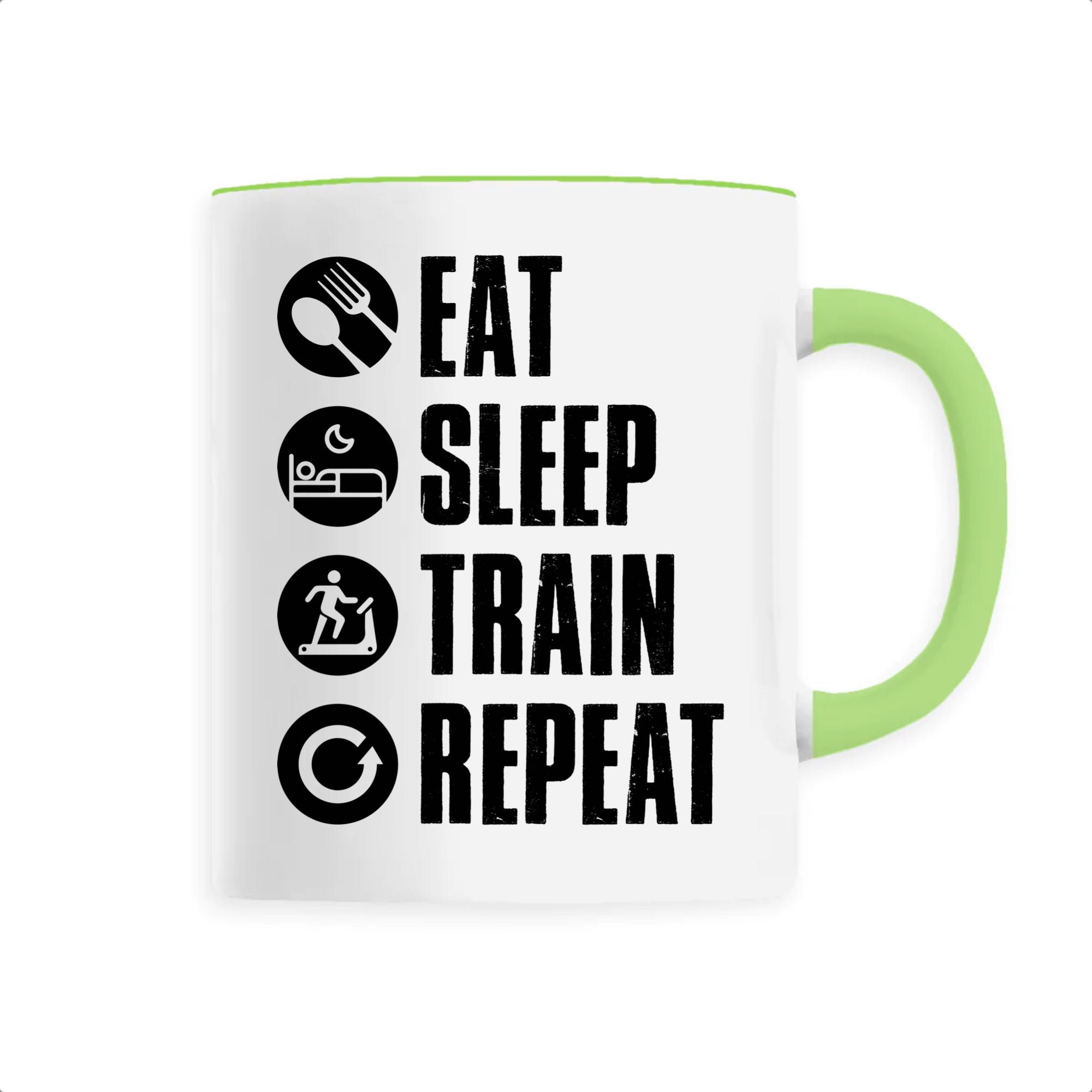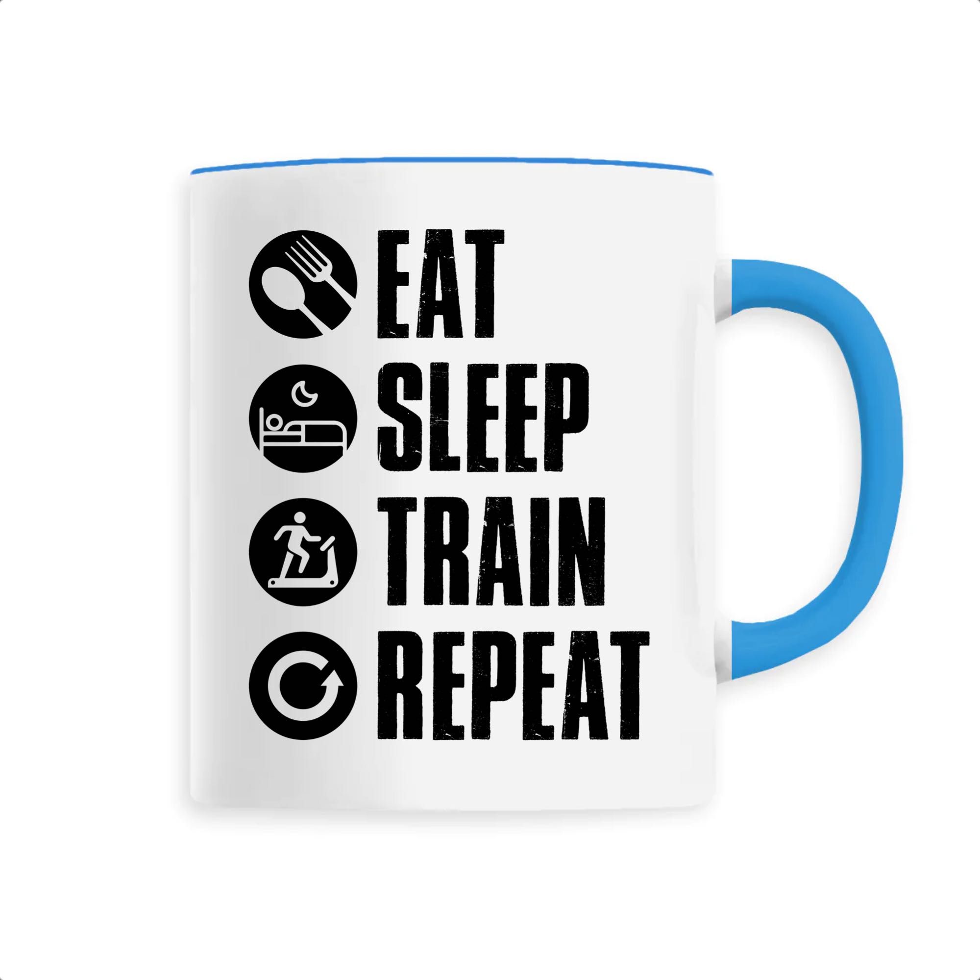 Manger, dormir, s’entraîner et recommencer: voilà le vrai sens de la vie pour tous les sportifs dans l’âme ! Si vous faites partie de ces gens là qui vivent pour la passion du sport, alors ce mug original vous conviendra parfaitement ! Pour offrir ou se faire plaisir, ce mug sera un très bon choix. Bonne humeur garantie 🙂