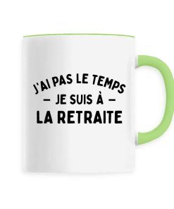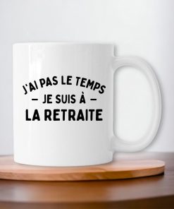 Souriez à chaque café avec le mug « Je suis à la retraite ». Un cadeau parfait pour célébrer ce nouveau chapitre de vie ou faire rire papy. Arborant un design humoristique : « J’ai pas le temps, je suis à la retraite« , il saura égayer les matinées et rappeler les joies de la liberté retrouvée. Un must-have pour tous les retraités modernes !