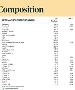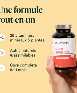 Formule multivitamines complète à base de 29 nutriments (vitamines, minéraux et extraits végétaux) spécifiquement dosés pour répondre aux besoins du corps.