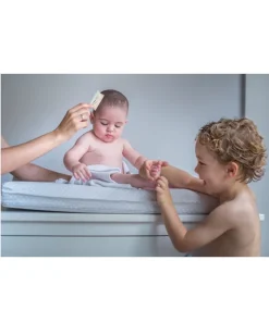 - Une brosse à dent à utiliser dès l’âge de 12 mois, à poils doux en nylon. Cette brosse permet de brosser efficacement les dents de lait de votre enfant. Sans BPA