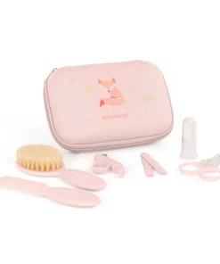 - Une brosse à dent à utiliser dès l’âge de 3mois : une brosse à lamelle en caoutchouc souple permettant de masser les gencives et le palais.