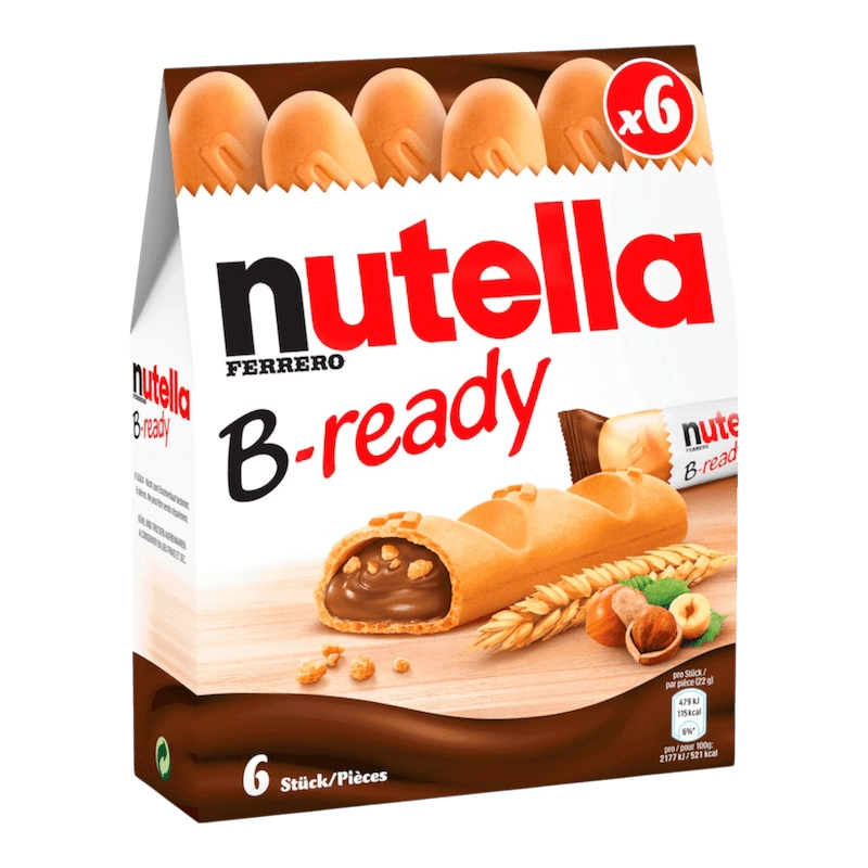 Nutella B-Ready est une collation unique et savoureuse qui associe une gaufrette croustillante à une garniture onctueuse de Nutella. Présenté en boîte de 132 g contenant 6 portions individuelles, chaque B-Ready est une parfaite bouchée gourmande : une coque légère et croustillante garnie de la célèbre pâte à tartiner aux noisettes et au cacao, agrémentée de petits éclats de céréales soufflées pour une texture encore plus agréable. Pratique et facile à emporter, c’est le snack idéal pour vos pauses café, goûters ou encas en déplacement.