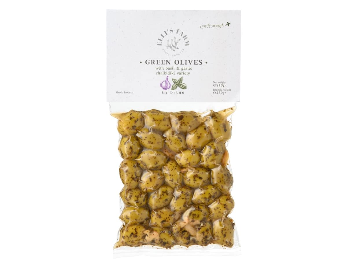 Olives Vertes marinées au basilic et à l’ail | 270 gr