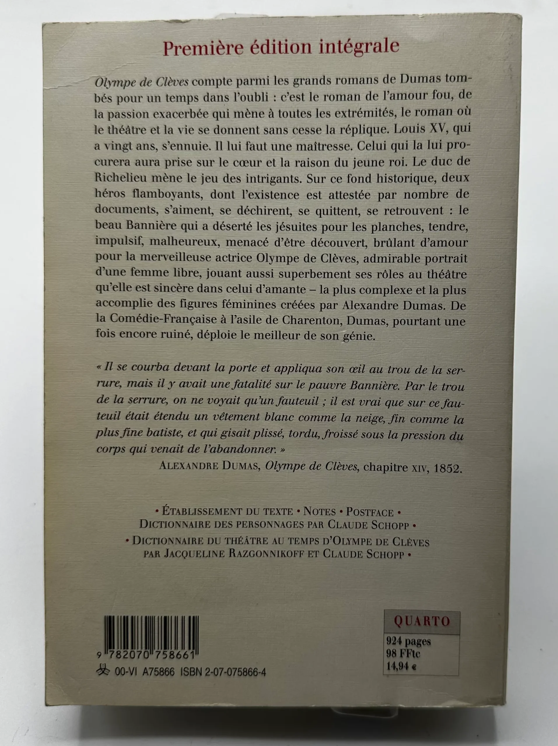 ALEXANDRE DUMAS, Olympe de Clèves, chapitre XIV, 1852.