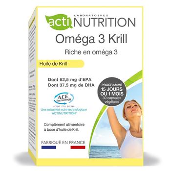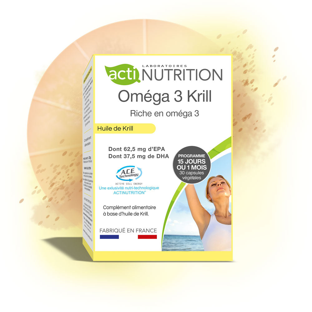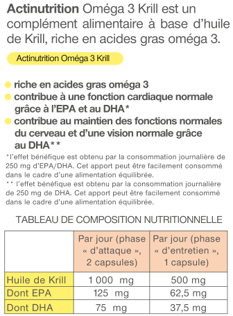 Actinutrition® Oméga 3 Krill est un complément alimentaire à base d’huile de Krill, riche en acides gras insaturés et en oméga 3.