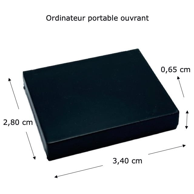 Dimensions : Longueur : 3,40 cm – Épaisseur 0,65 cm – Profondeur 2,80 cm