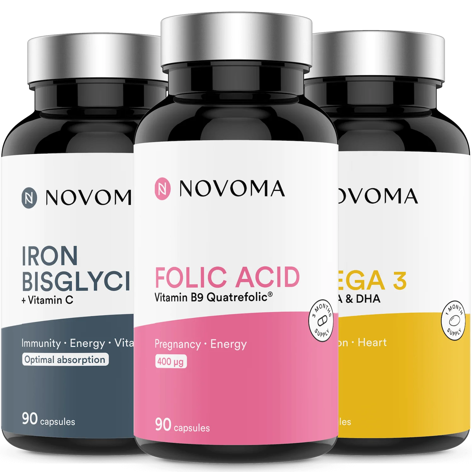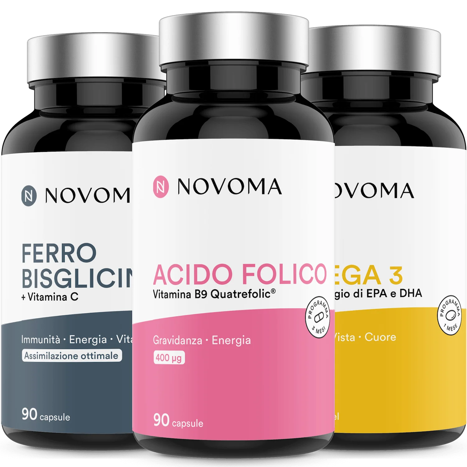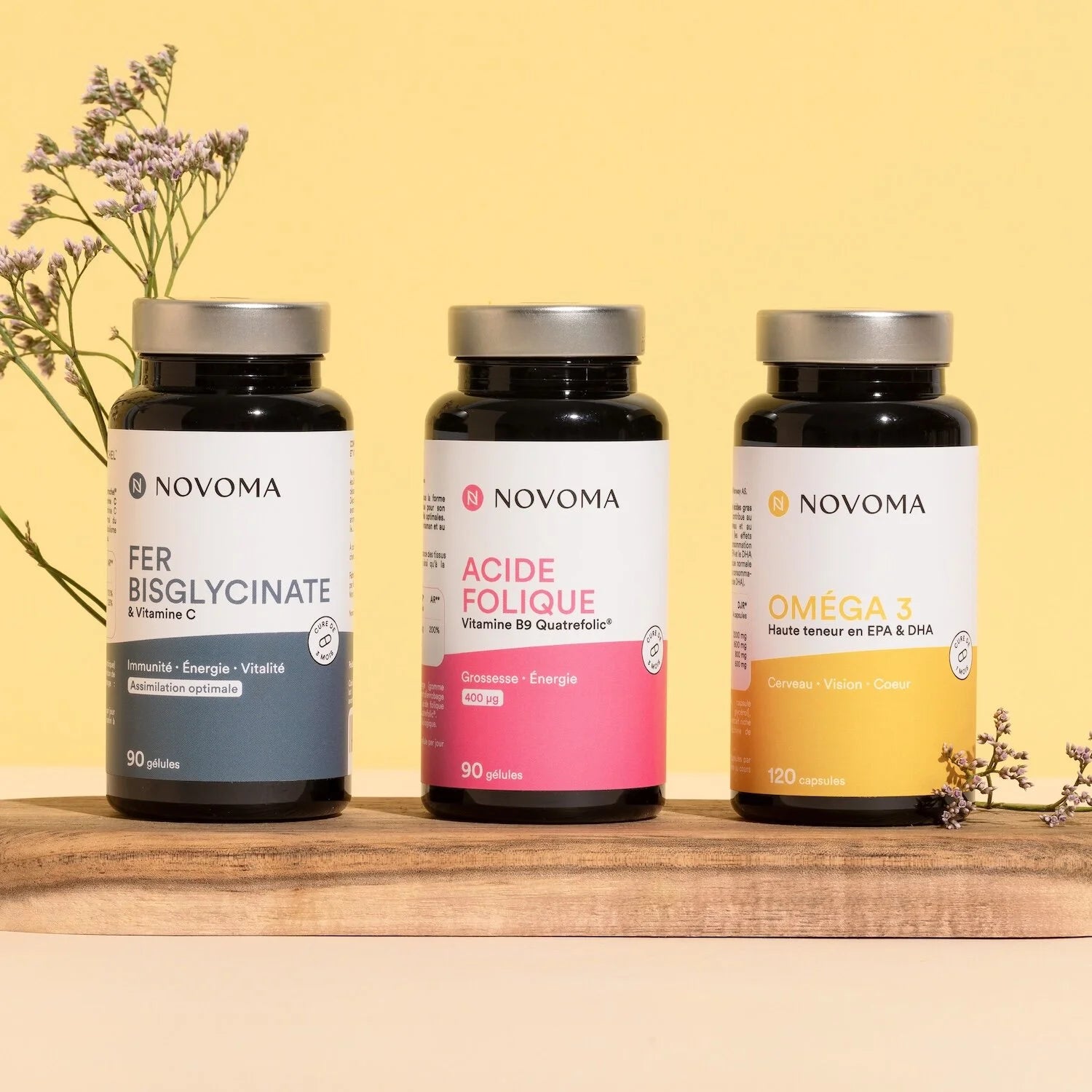Envie de vivre une grossesse en toute sérénité ? Le Pack Grossesse combine Fer Bisglycinate, Acide Folique Quatrefolic® et Oméga 3 Epax® pour répondre aux besoins essentiels de la future maman et du bébé.