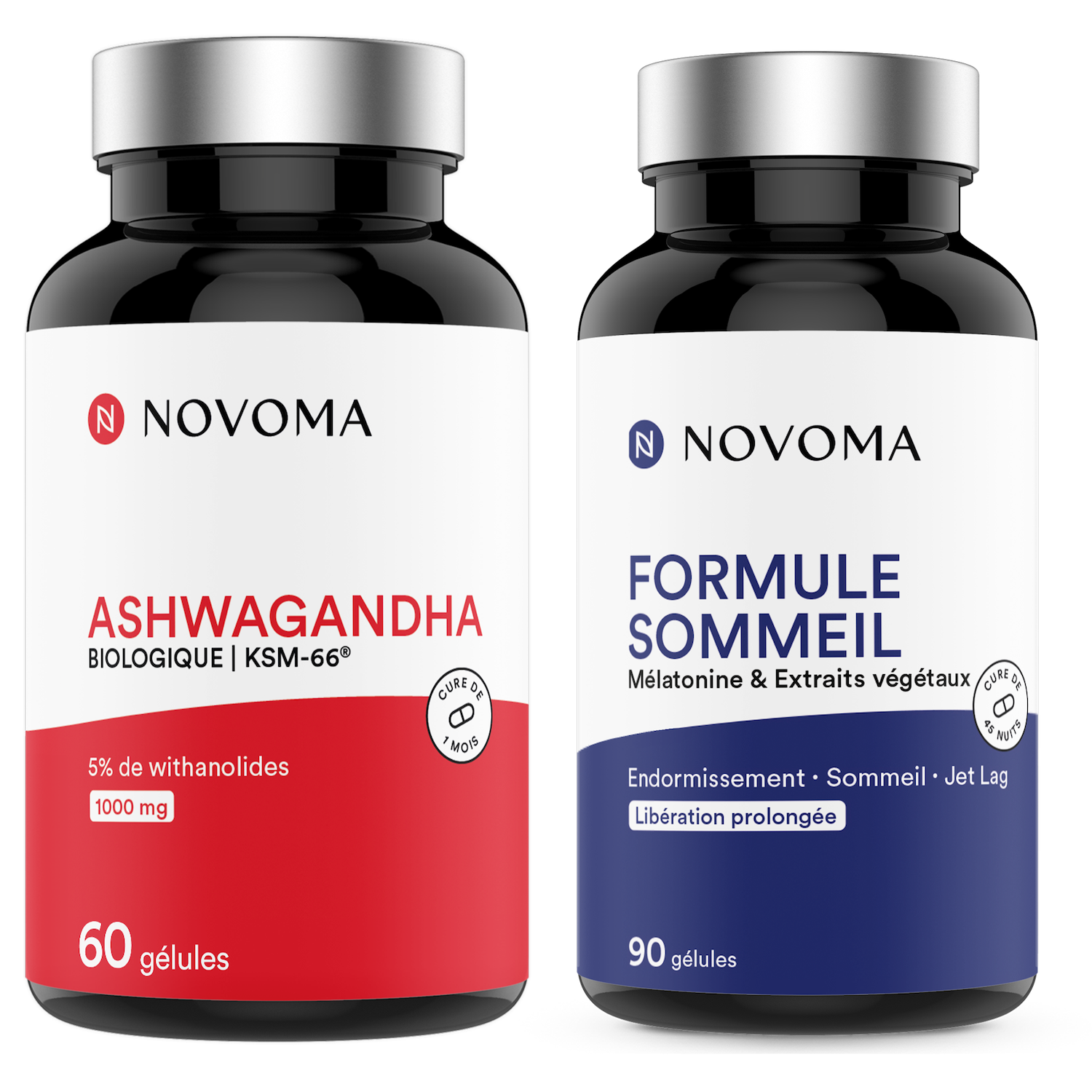 Vous avez du mal à gérer le stress et à trouver un sommeil réparateur ? Le Pack Stress & Sommeil combine Ashwagandha Bio et Formule Sommeil pour apaiser l’anxiété, améliorer la relaxation et favoriser un endormissement naturel.