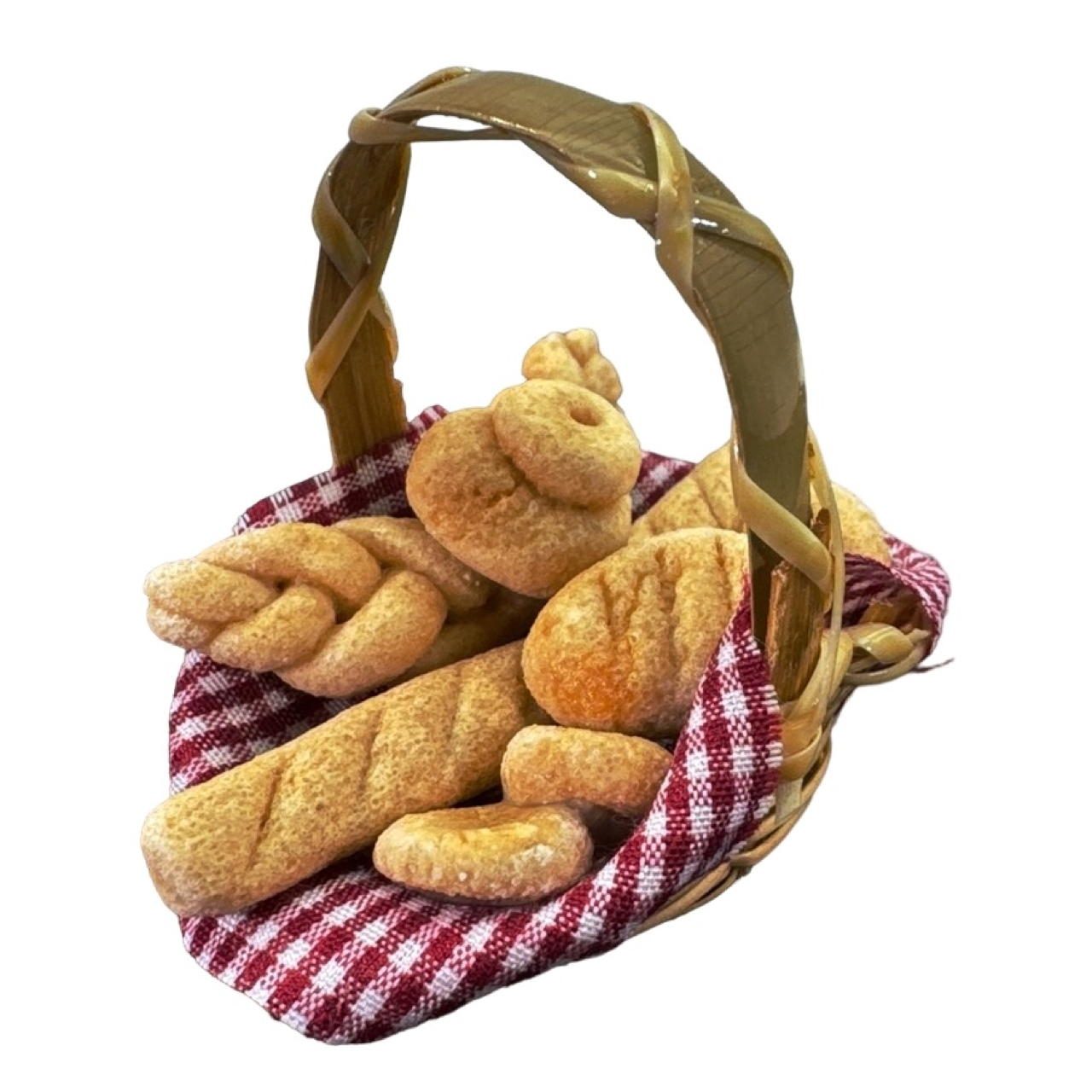 Infos : Magnifique panier de boulangerie d’un réalisme saisissant.