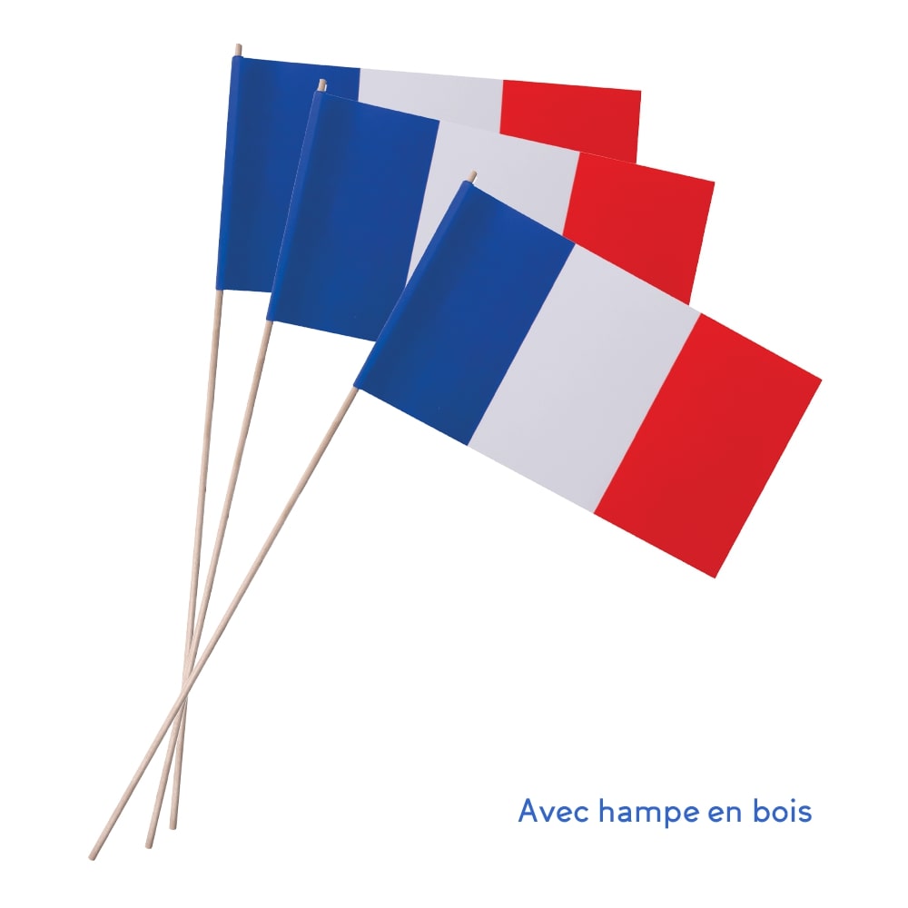 Drapeau en papier glacé 150 g/m² Au choix : hampe biodégradable en bois (39cm) ou en papier roulé (32cm)