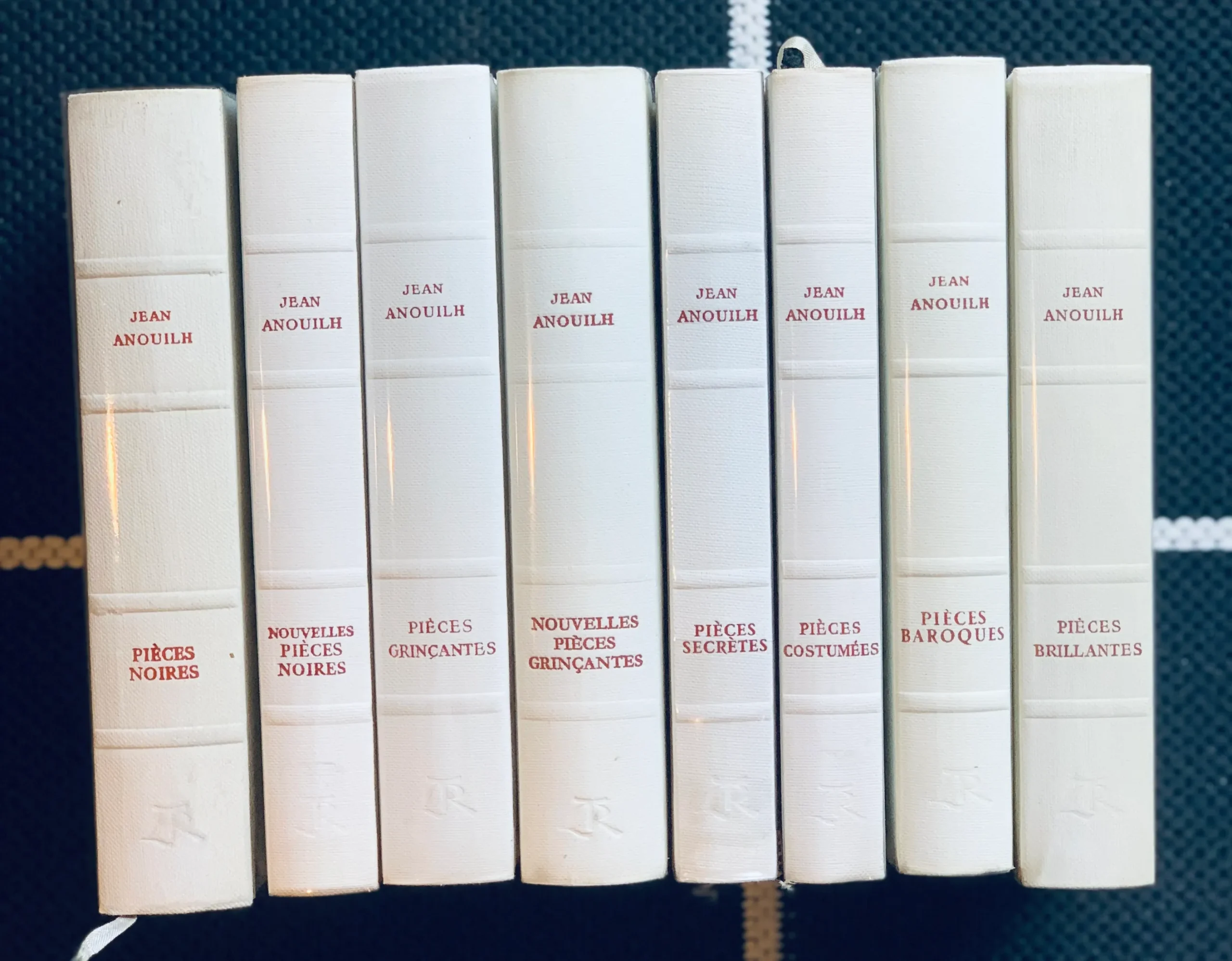 33003. LOT DE 8 LIVRES RELIÉS, LES ÉDITIONS DE LA TABLE RONDE, 1972. .LIVRES EN EXCELLENT ÉTAT, IL FAUT NOTER UN DÉFAUT POUR LEQUEL JE LES CLASSE SEULEMENT EN BON ÉTAT : TRACES DE SCOTCH SUR LES PREMIÈRES ET DERNIÈRES PAGES , VISIBLES ET PRÉSENTS SUR TOUS LES LIVRES. LES JAQUETTES EN PLASTIQUE PRÉSENTES ET SANS DÉFAUT SUR 7/8 LIVRES, SUR LE 8 eme JAQUETTE EST REMPLACÉ PAR LE FILM PLASTIQUE TRÈS BIEN POSÉ. ENVOI EN COLISSIMO POUR LA FRANCE. EN SUIVI POUR L ÉTRANGER. Voici LA LISTE DE LIVRES : Pièces noires Nouvelles pièces noires Pièces costumées Pièces baroques Pièces grinçantes Nouvelles pièces grinçantes Pièces brillantes Pièces secrètes Jean Anouilh. N° de réf. du vendeur 33003