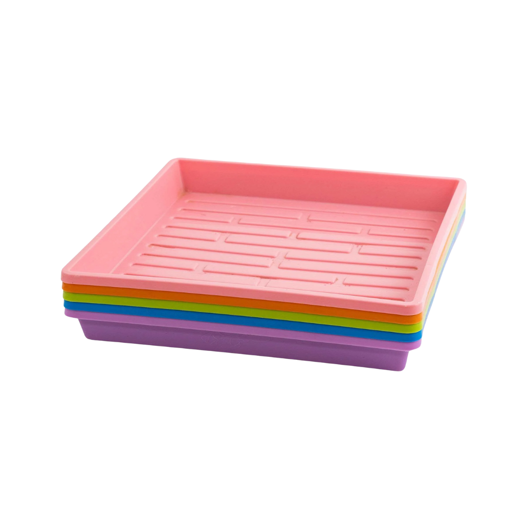 Plateau étanche sans trous de drainage, dimensions 10 x 10 x 1,25 po (25,4 x 25,4 x 3,2 cm). Fabriqué en plastique rigide et durable. Compatible avec les inserts et systèmes de culture en intérieur.