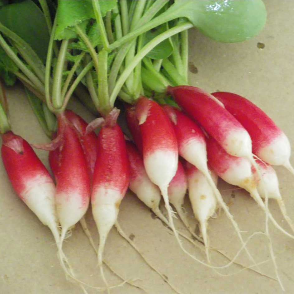 Le radis Flamboyant est moyennement long, de couleur écarlate avec l’extrémité blanche. Cette variété ancienne est très croquante.