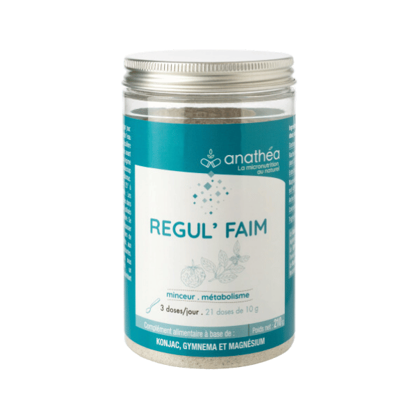 Anathéa Régul’faim est un complément alimentaire naturel en poudre de 210g spécialement conçu pour soutenir la gestion de l’appétit et aider à réguler les envies de grignotage tout au long de la journée. Grâce à une formule riche en fibres et en ingrédients soigneusement sélectionnés, il agit comme un coupe-faim naturel tout en favorisant la sensation de satiété. Pratique à utiliser, Régul’faim s’intègre facilement dans un smoothie, un yaourt, ou une préparation quotidienne pour un soutien optimal dans le cadre d’un régime équilibré.