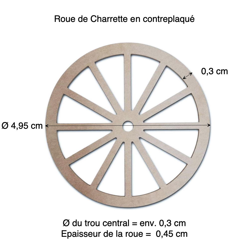 Apportez une touche d’authenticité à vos créations miniatures avec cette roue de charrette en contreplaqué. Parfaitement conçue pour les maisons de poupée à l’échelle 1/12ᵉ, elle se distingue par son design réaliste et son fin découpage laser en rayons. Que ce soit pour décorer une scène rustique, construire une calèche ou un charriot, cet accessoire miniature sublimera vos projets.