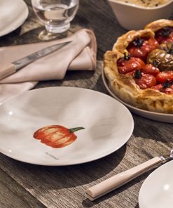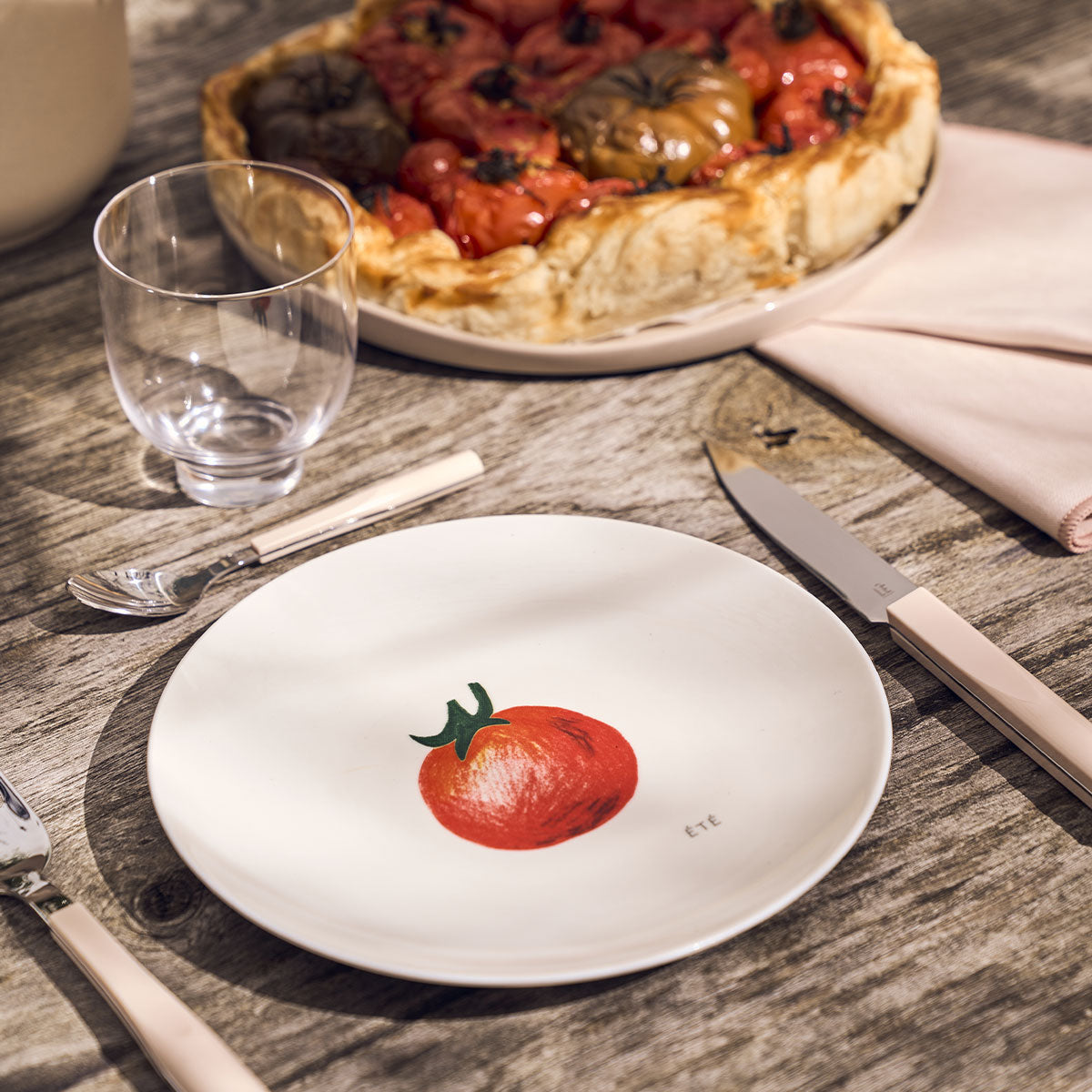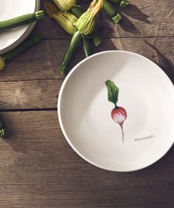 La collection SAISONS est disponible en deux coffrets fruits et légumes de quatre assiettes représentant chacune une saison. Ici le coffret présente nos légumes favoris avec le radis printanier, la tomate qui nous rafraichit en été, le potiron automnal et enfin le brocoli de l’hiver. Tous ces fruits et légumes ont été dessinés à la main au sein même de notre studio de design. Chaque coup de crayon de couleur se révèle alors sur la porcelaine et donne à cette collection un supplément d’âme indéniable. Grâce à une forme légèrement creuse, les assiettes SAISONS se prêtent particulièrement à toutes les tables axées sur le partage.