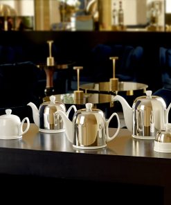 Créé en 1953, la théière SALAM est une référence incontournable pour tous les amoureux du thé. L’infuseur amovible révèle toute la subtilité du thé et évite l’amertume due à une trop longue infusion. La cloche en acier doublée d’une feutrine maintient le thé à la bonne température. Véritable icône, la SALAM honore les tables par sa présence. La théière SALAM blanche proposée en 4 tailles (2, 4, 6 ou 8 tasses), se coordonne à une ligne d’accessoires conçus pour profiter au mieux de la pause thé. Les théières sont vendues sans mugs ou tasses.