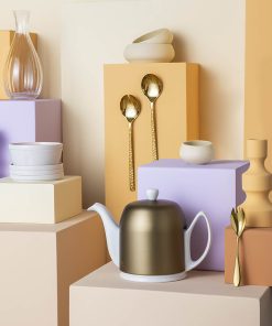Créé en 1953, la théière SALAM est une référence incontournable pour tous les amoureux du thé. L’infuseur amovible révèle toute la subtilité du thé et évite l’amertume due à une trop longue infusion. La cloche en acier doublée d’une feutrine maintient le thé à la bonne température. Véritable icône, la SALAM honore les tables par sa présence. La théière Salam blanche proposée en 4 tailles (2, 4, 6 ou 8 tasses), se coordonne à une ligne d’accessoires conçus pour profiter au mieux de la pause thé. Les théières sont vendues sans mugs ou tasses.