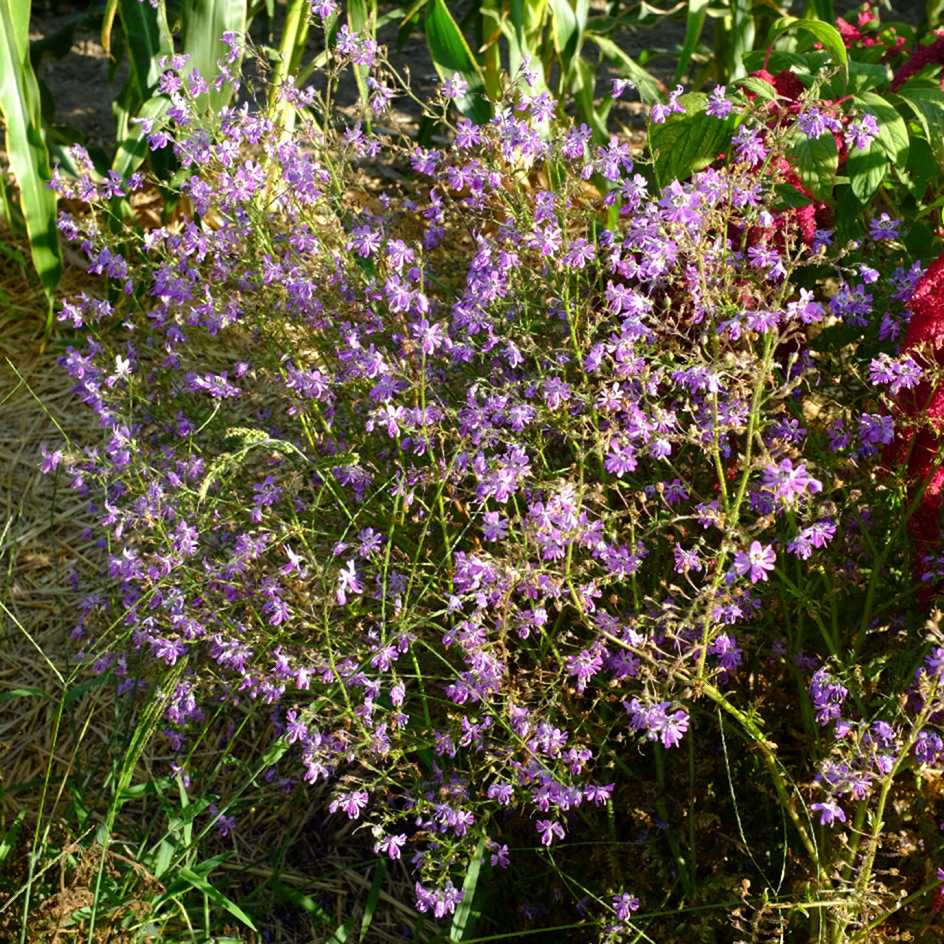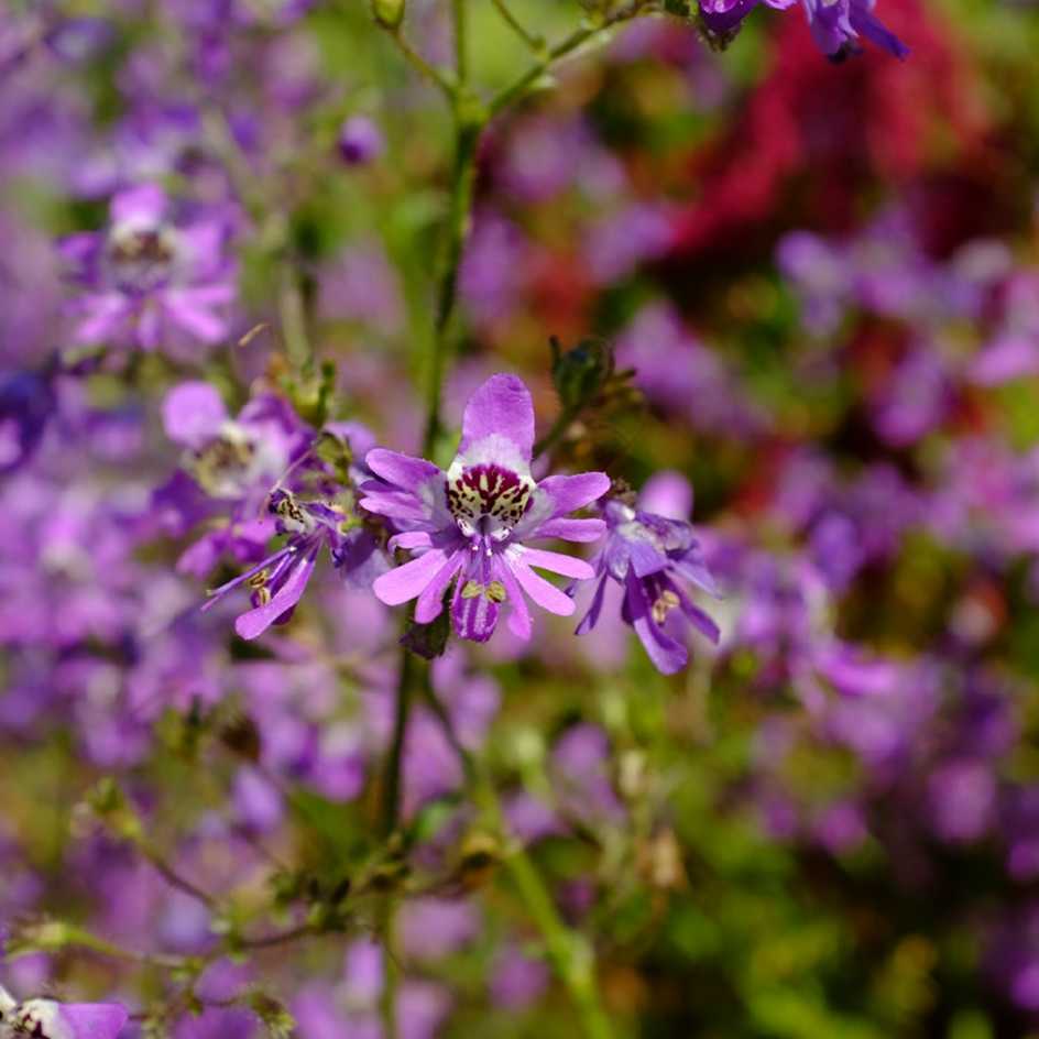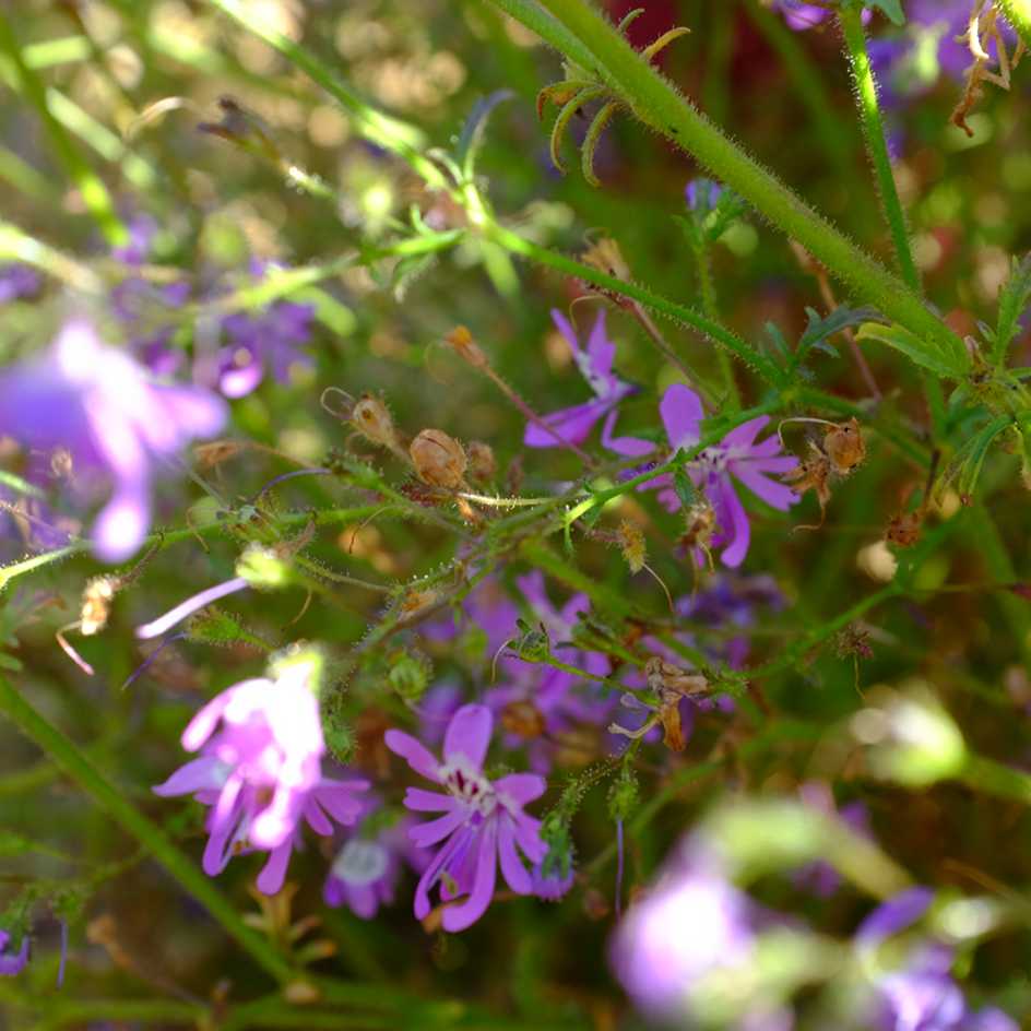 Cette plante endémique du Chili est fréquente. Cette plante est très florifère. Les fleurs sont bleu lavande à violet, en pannicules terminales. La floraison s’étale de fin juin à fin août.