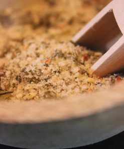 Né de l’alliance du fameux Sel de Guérande et de l’ail des ours, ce produit est un véritable héritage du terroir. Le Sel de Guérande, reconnu pour sa pureté exceptionnelle, est récolté à la main selon des méthodes ancestrales. Quant à l’ail des ours, il est réputé pour son goût puissant et sa fraîcheur incomparable. L’ajout d’ail semoule et d’échalote semoule renforce la complexité des arômes et la profondeur des saveurs.