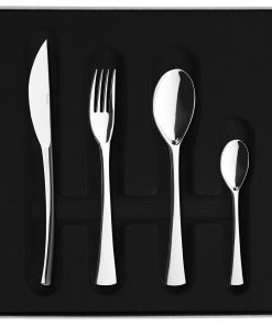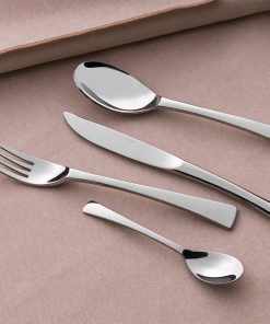 Les couverts SOLSTICE de DEGRENNE se démarquent par leurs parties hautes, généreuses et gourmandes. Leur largeur de manche les rend très stables et la collection offre deux choix de couteaux : un couteau qui se pose sur la tranche pour apporter personnalité à vos tables et un couteau plus consensuel en terme de style. Faciles d’entretien, les couverts SOLSTICE sont réalisés en acier inoxydable 18-10 de haute qualité et résistance.