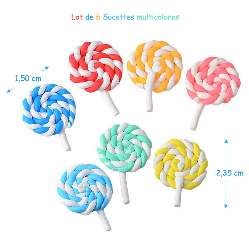 Lot de 6 Sucettes – Résine – Coloris : Multicolore