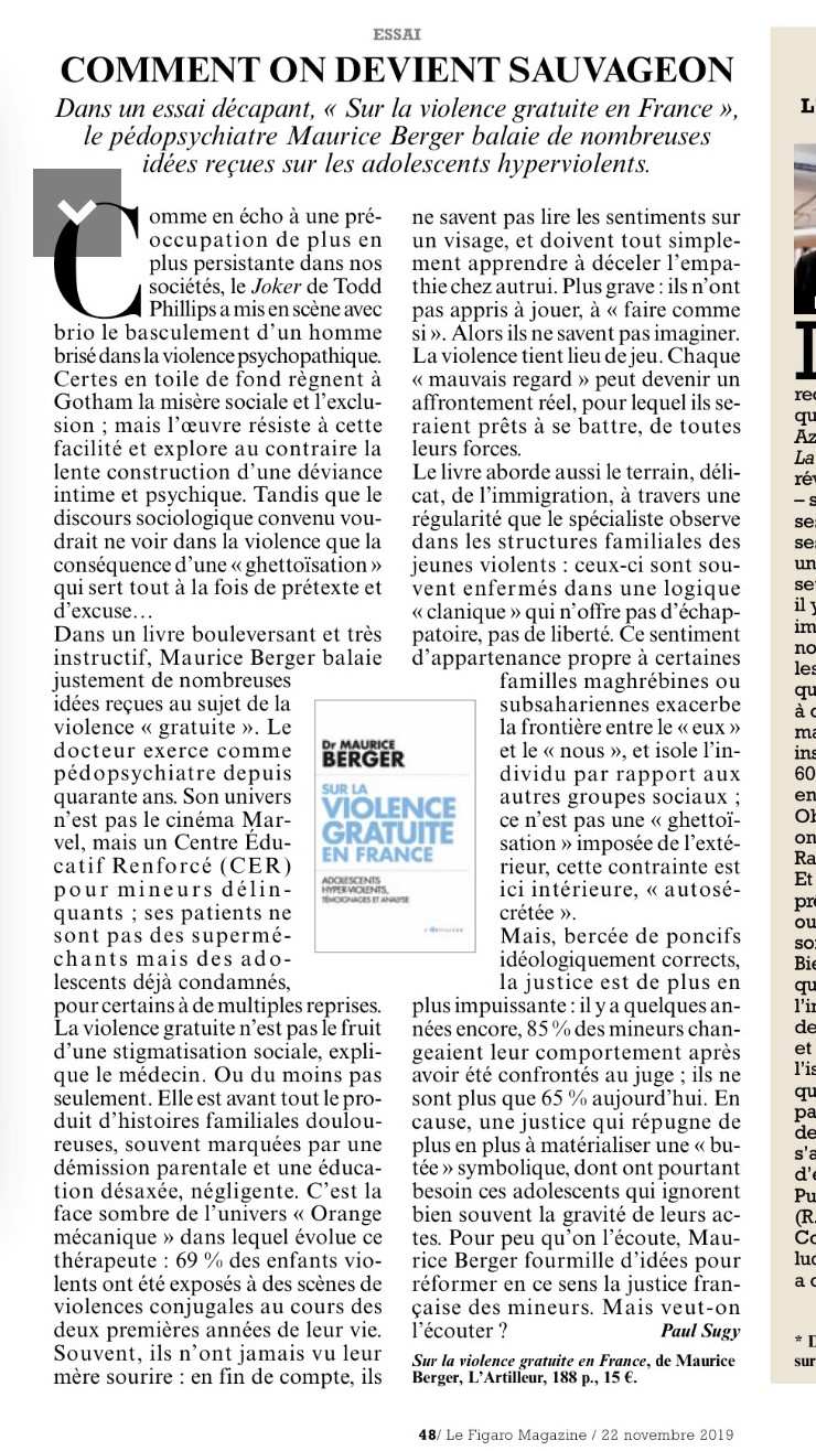 Sur la violence gratuite en France : Adolescents hyper-violents, témoignages et analyse – Maurice BERGER