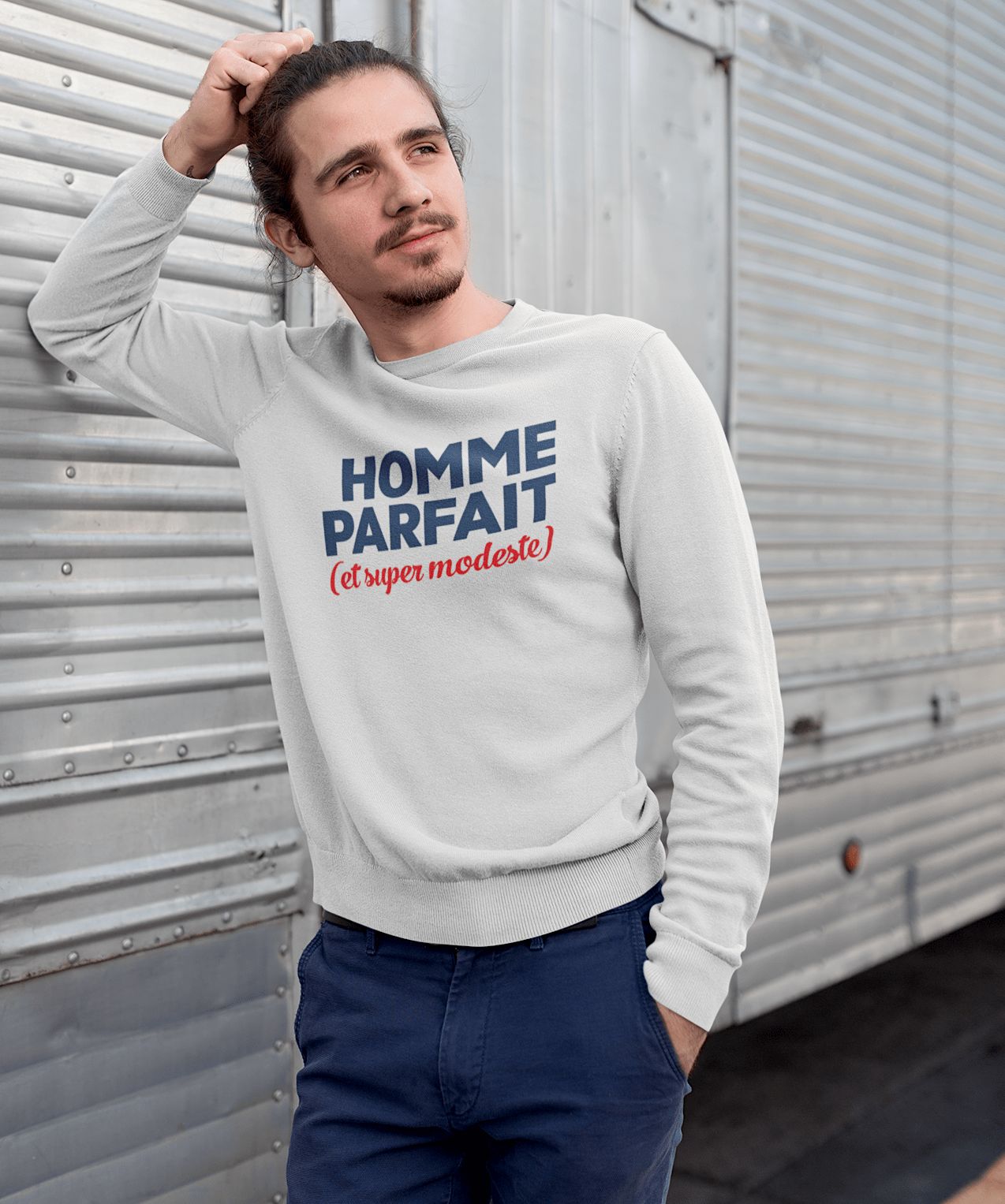 Si vous êtes un homme parfait et pas du tout modeste, alors vous adorerez montrer votre perfection avec ce sweat à message. Pour offrir un cadeau original ou se faire plaisir, ce sweat sera un très bon choix. Bonne humeur garantie 🙂