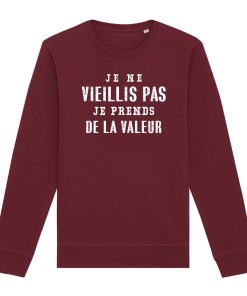En prenant de l’âge, vous prendrez aussi de la valeur. Si vous êtes dans cet état d’esprit, vous resterez jeune dans votre tête et c’est bien ce qui compte le plus. Ce sweat à message conviendra parfaitement pour un cadeau d’anniversaire original. Bonne humeur garantie 🙂