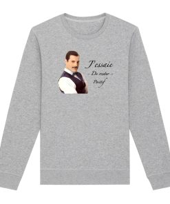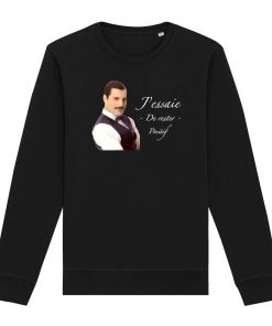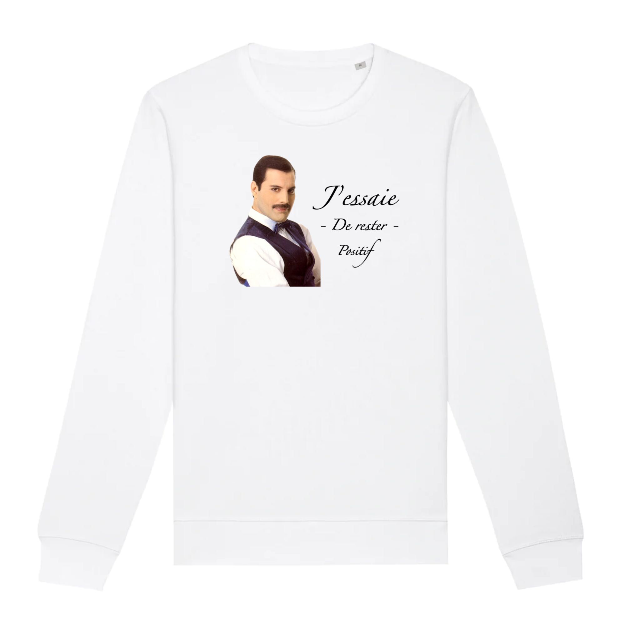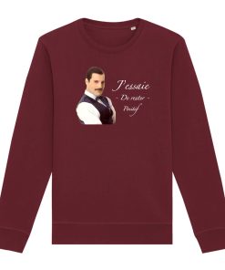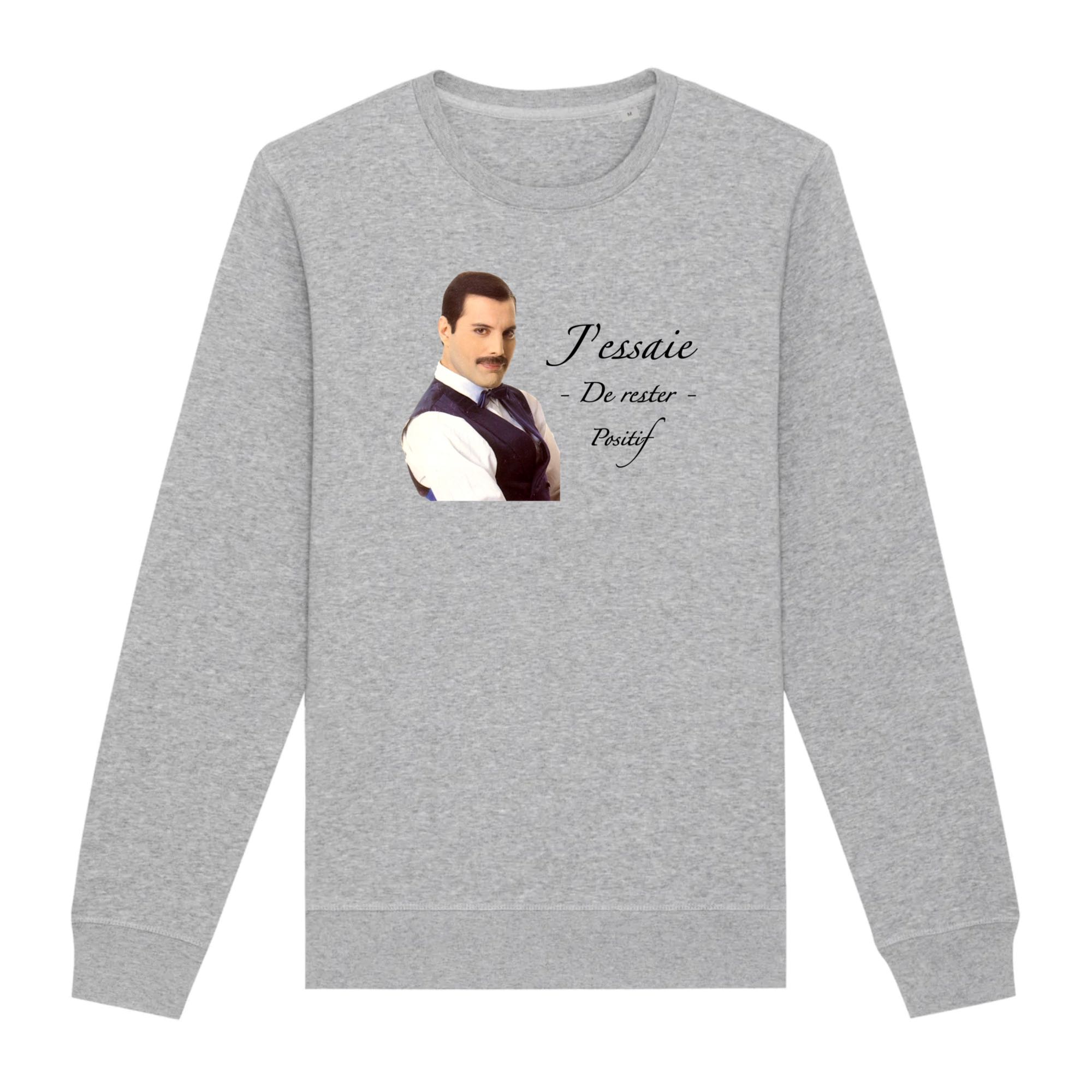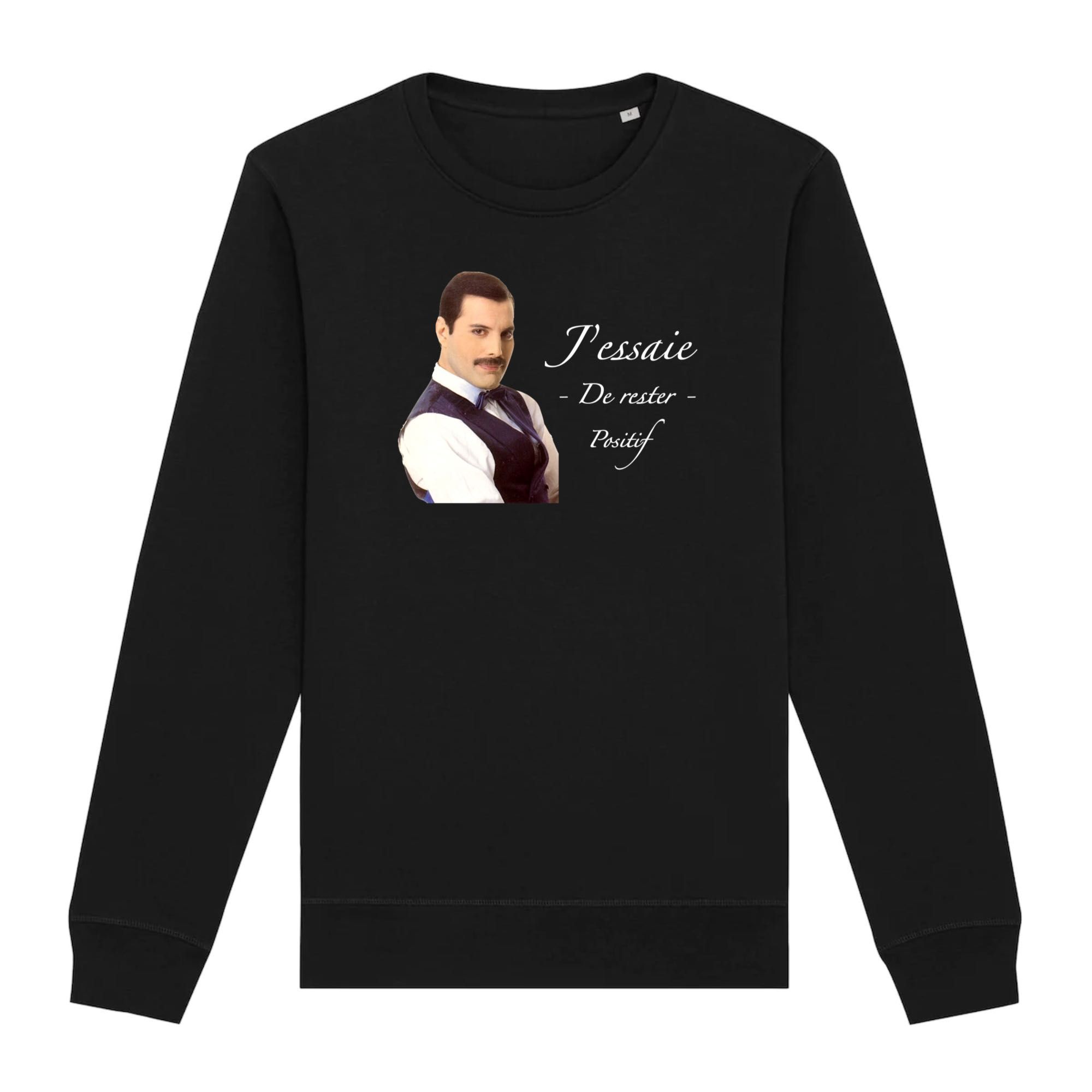 Les amateurs d’humour noir vont être ravi ! Ce sweat sur Freddie Mercury avec son jeu de mot « j’essaie de rester positif » est bien entendu à prendre au second degré ! 🙂