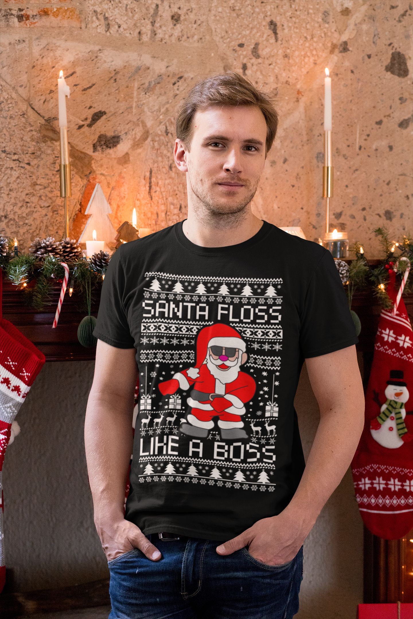 T shirt noel « Santa Floss » – Pour Homme