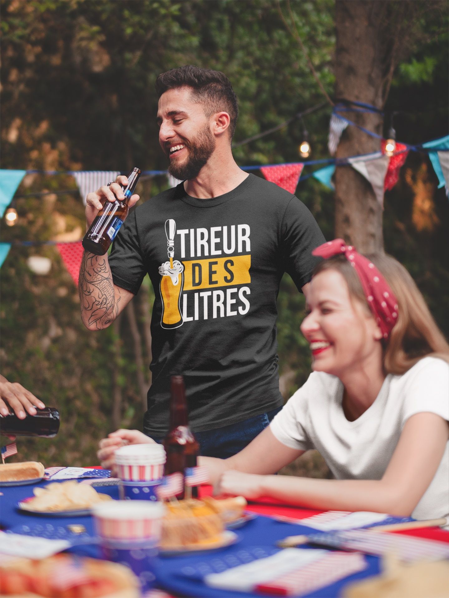 Un tireur d’élite et un tireur des litres ce n’est pas tout à fait pareil, mais si vous appréciez la bière et les jeux de mots, alors ce t-shirt est fait pour vous ! Soyez prêt à prouver votre savoir-faire en matière de dégustation de bière avec notre t shirt « Tireur des litres ». Avec ce t shirt, vous serez le maître incontesté du bar, capable de vider des litres de bière. Bonne humeur garantie lors de vos soirées bière-riffique 🙂