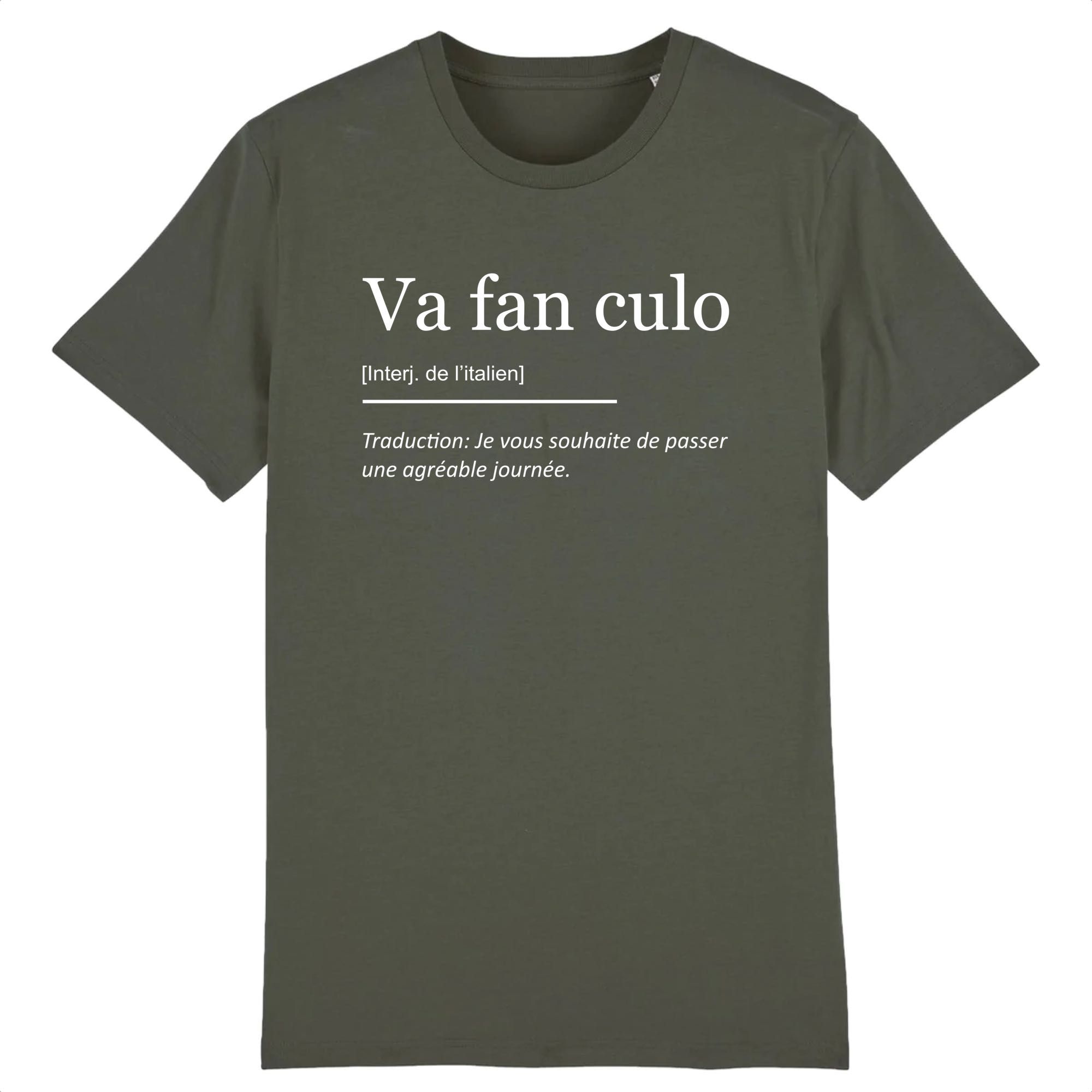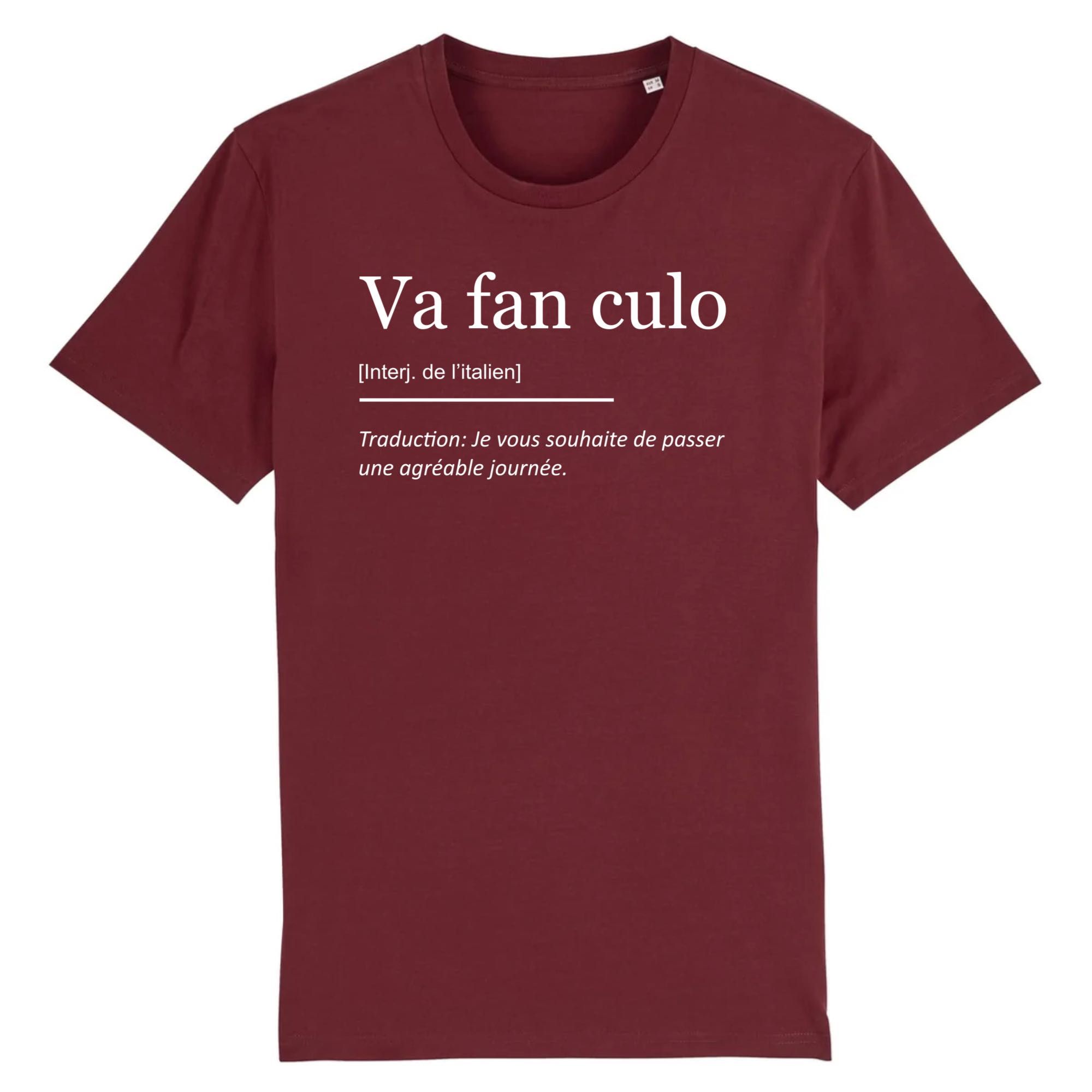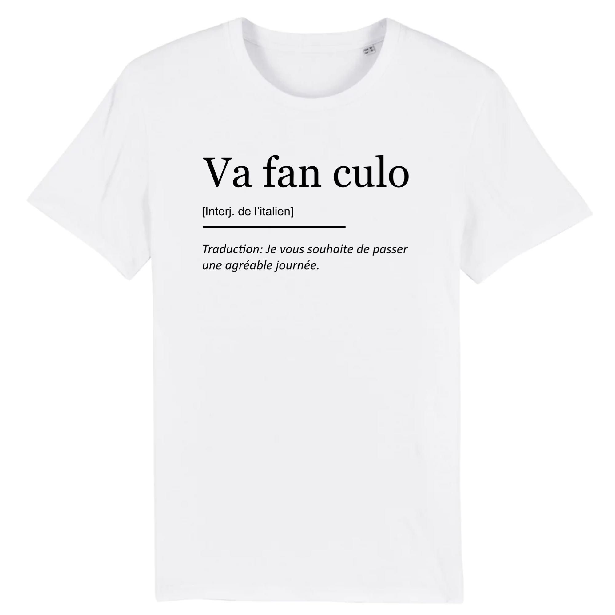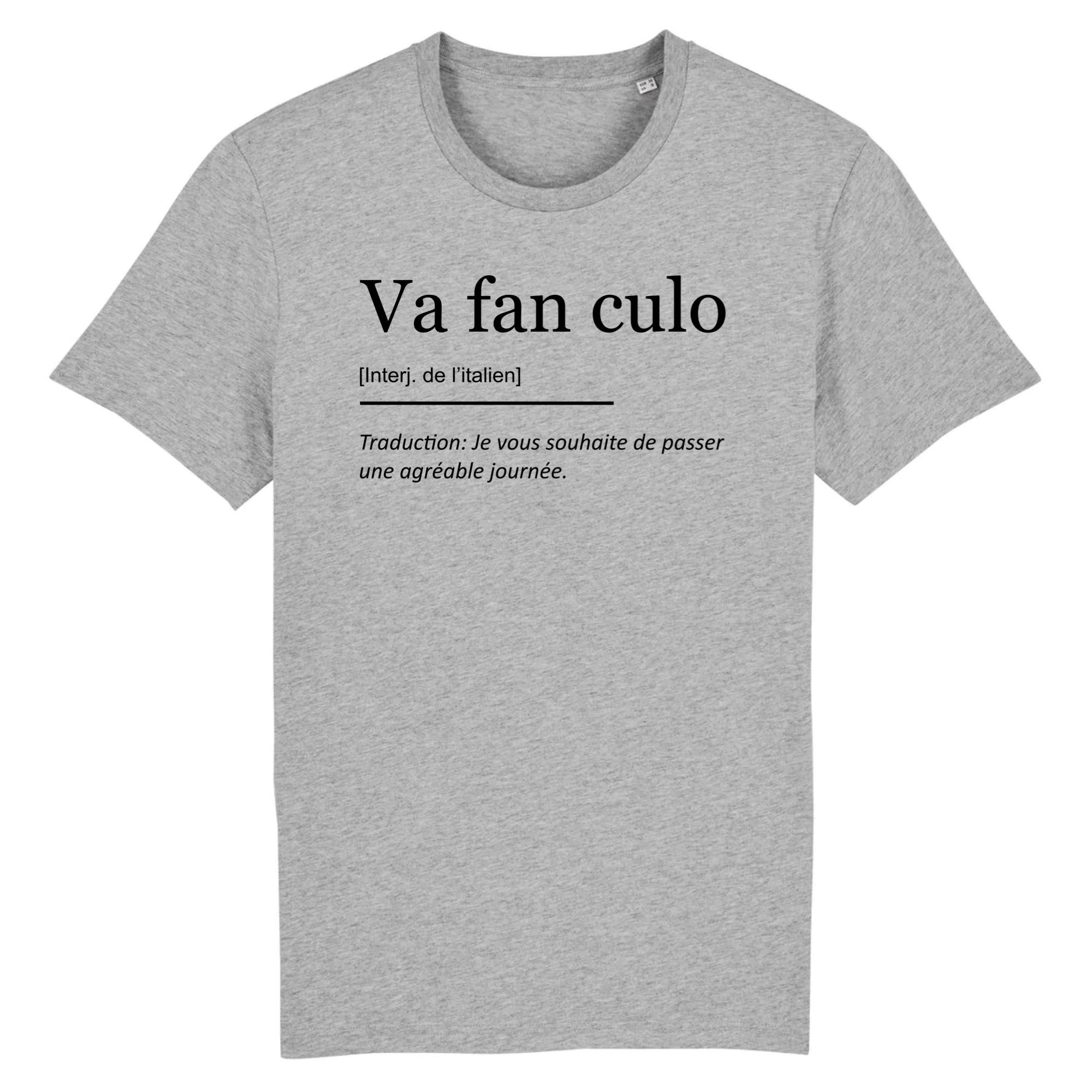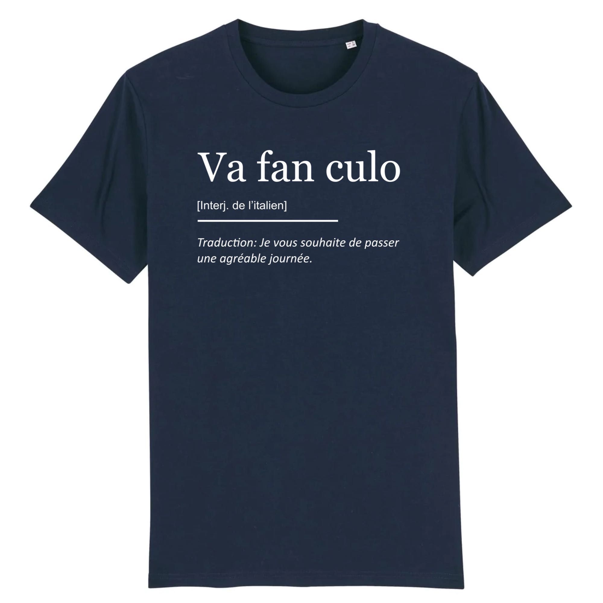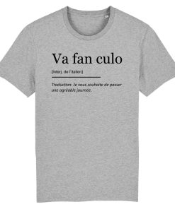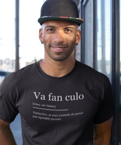 Le t shirt idéal pour souhaiter une très bonne journée à votre entourage. A éviter de porter en Italie… Pour offrir ou se faire plaisir ce t shirt « va fan culo » humoristique sera un très bon choix. Bonne humeur garantie 🙂