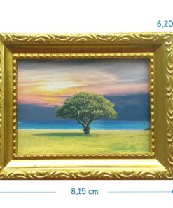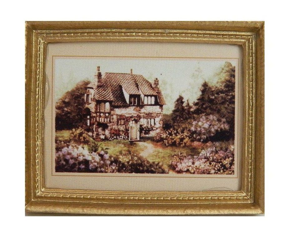 Tableau maison de campagne cadre en bois – 7,3 cm X 5,8 cm