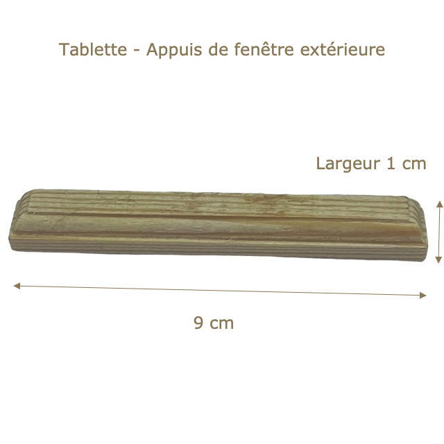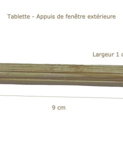 Tablette – Bois brut : Longueur 9 cm – Largeur 1 cm – Ép.1 cm
