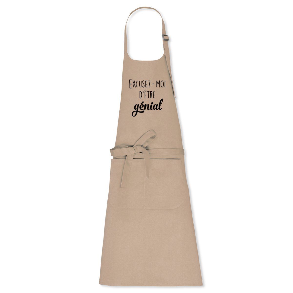 Affichez votre brillance en cuisine avec notre tablier unique, « Excusez-moi d’être génial ». Un clin d’œil humoristique à tous les cuisiniers amateurs qui manient le fouet et la spatule avec une confiance inébranlable. Idéal pour les as de la gastronomie, ce tablier est l’atout parfait pour ceux qui aiment cuisiner avec une touche d’auto-dérision. Une idée cadeau amusante et originale qui fera sourire à coup sûr. Portez-le et régalez vos invités, tout en affichant votre côté chef extraordinaire!