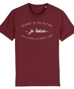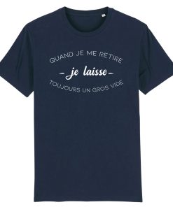 Si pour toi aussi c’est un problème de laisser un gros vide quand tu te retires, alors ce tee shirt est fait pour toi! Que tu sois quelqu’un de trop attachant pour ton entourage ou alors quelqu’un de bien membré, ce t shirt à message conviendra parfaitement dans les deux situations… Les esprits mal placés seront comblés de bonne humeur ! 🙂